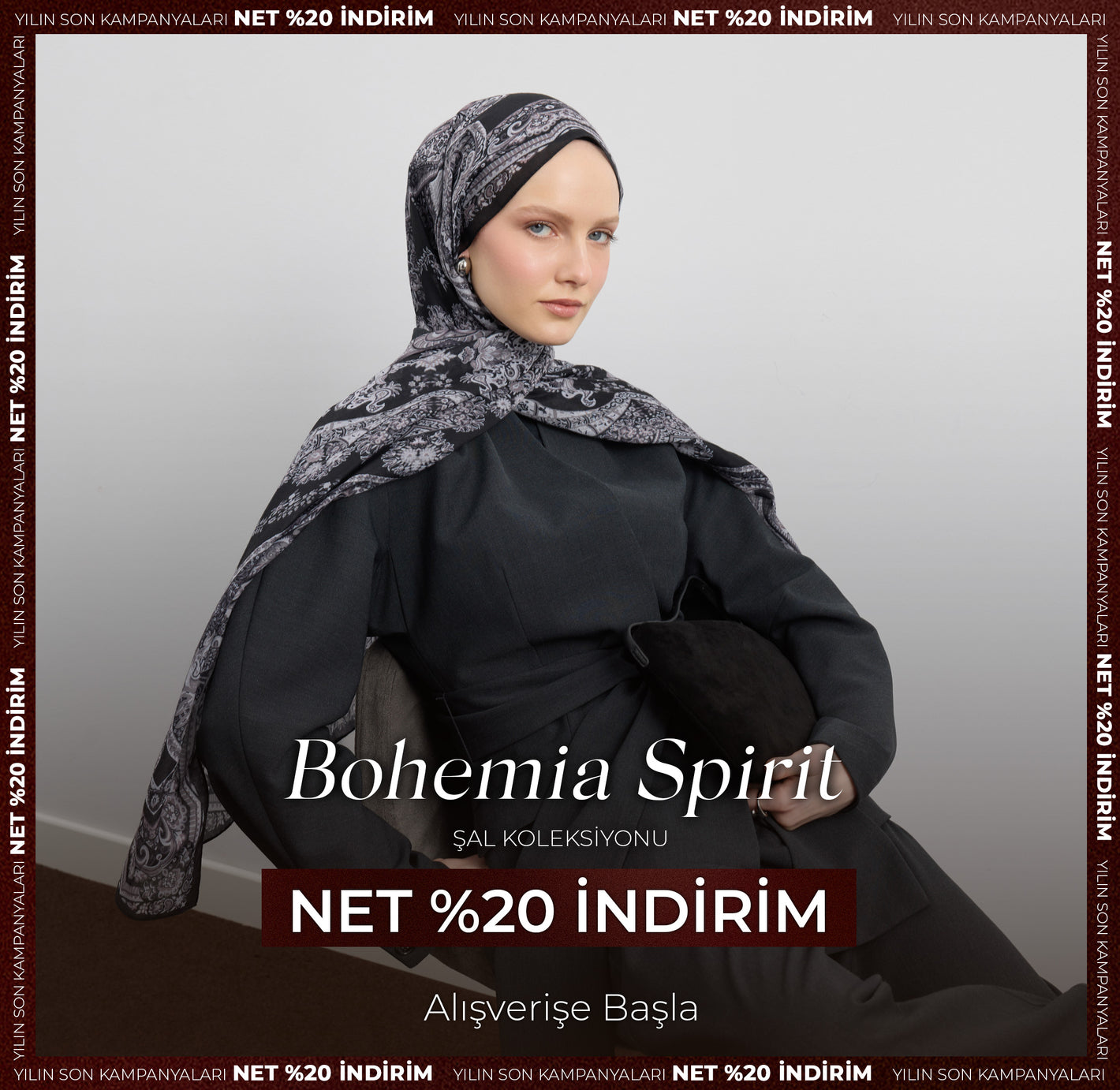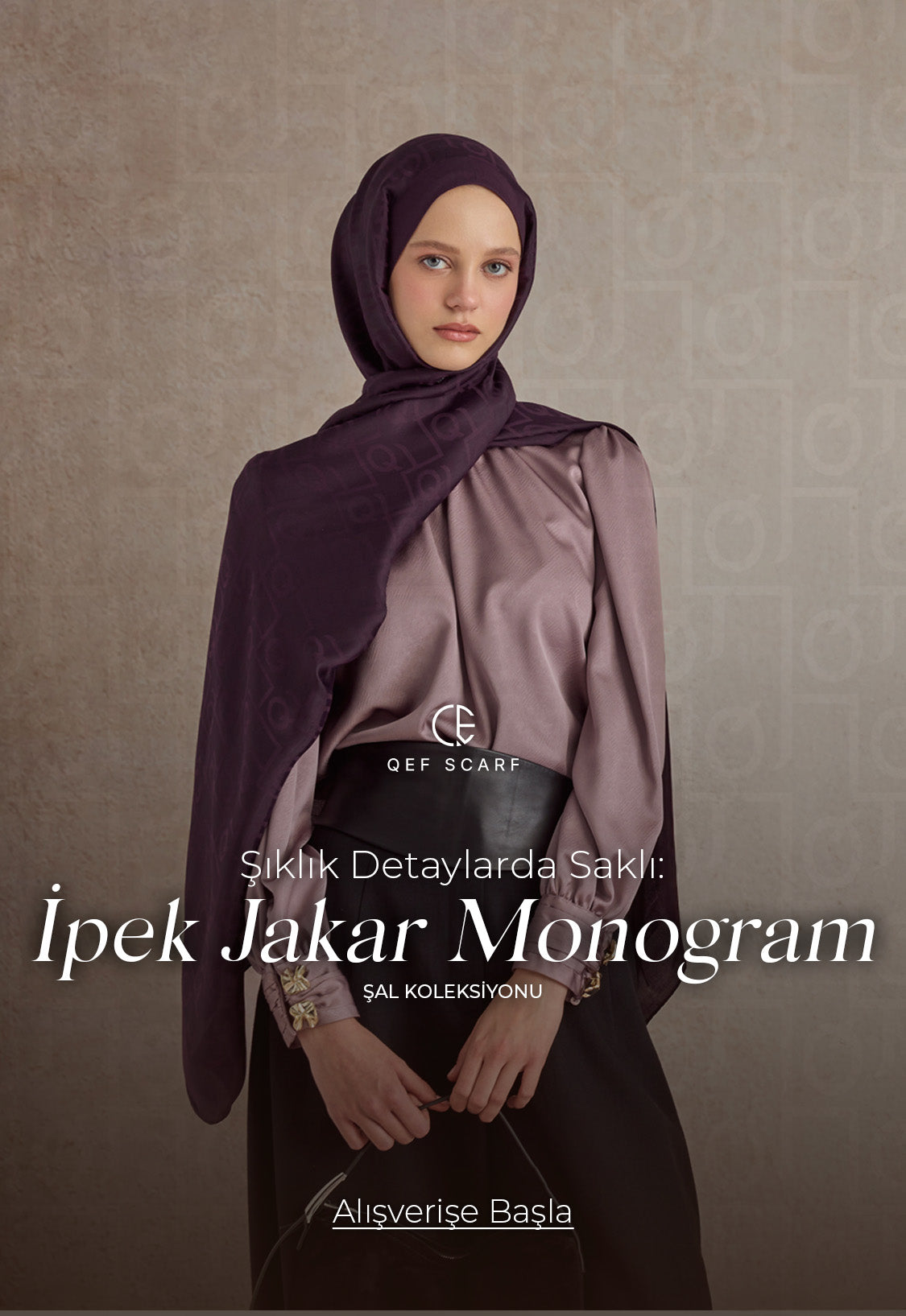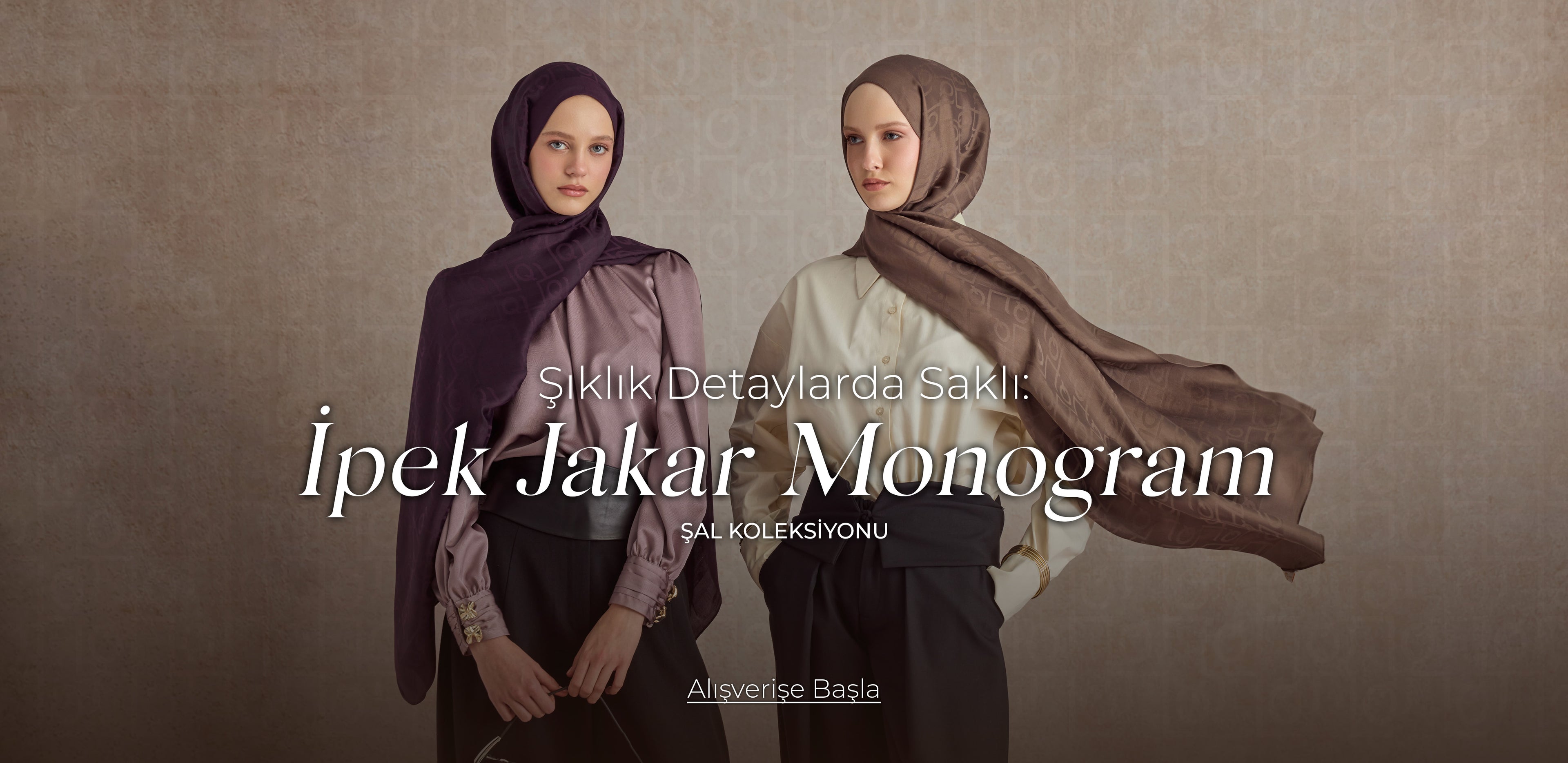 İpek Jakar Monogram Şal Vizon
