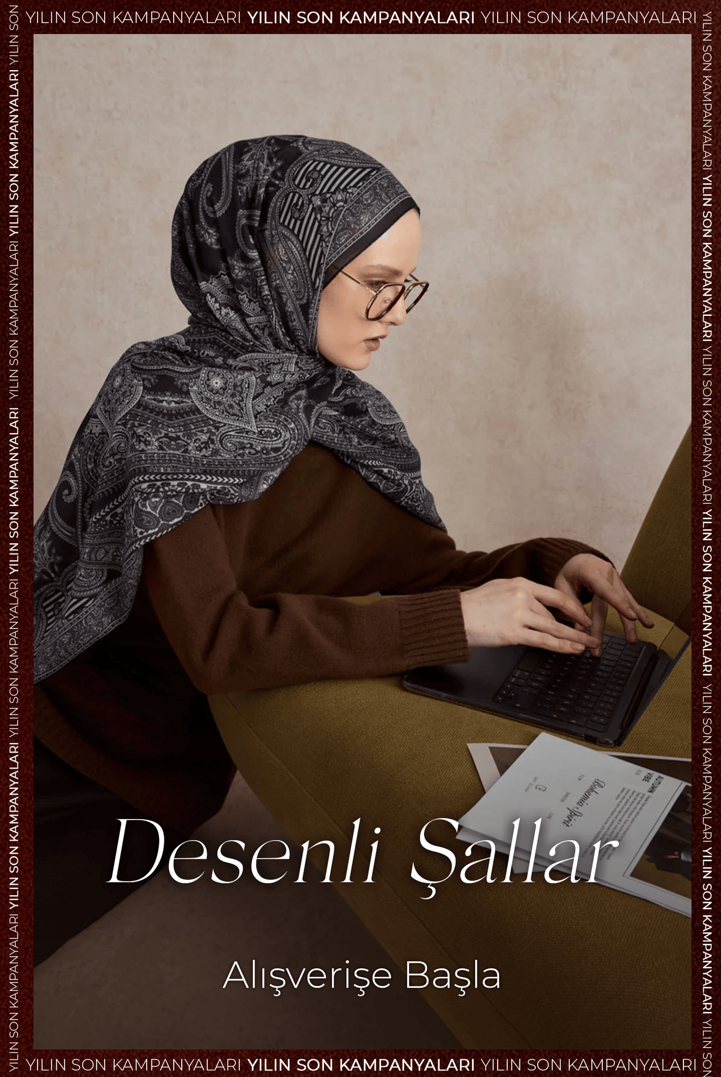 İpek Jakar Monogram Şal Acı Kahve