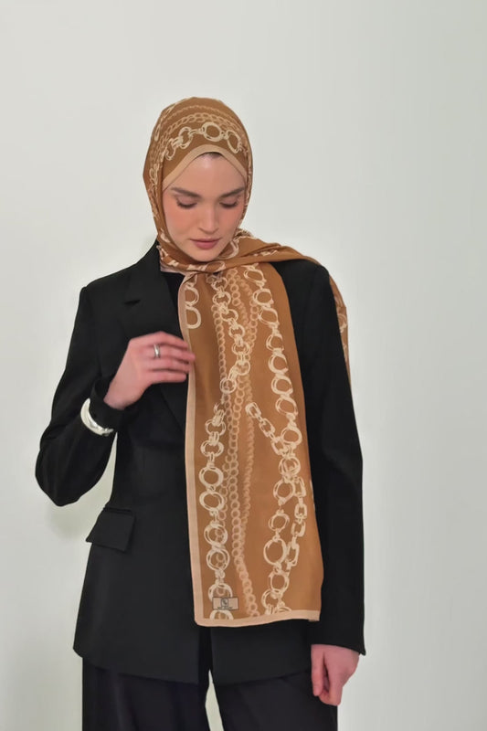 Cotton Twill Şal Loop Line Kızıl Kahve