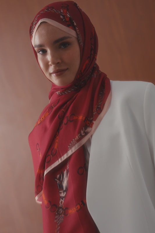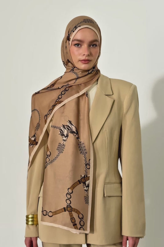 Desenli Twill İpek Eşarp Ema