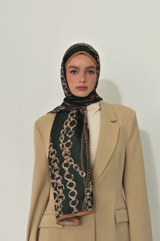 Cotton Twill Şal Loop Line Koyu Yeşil