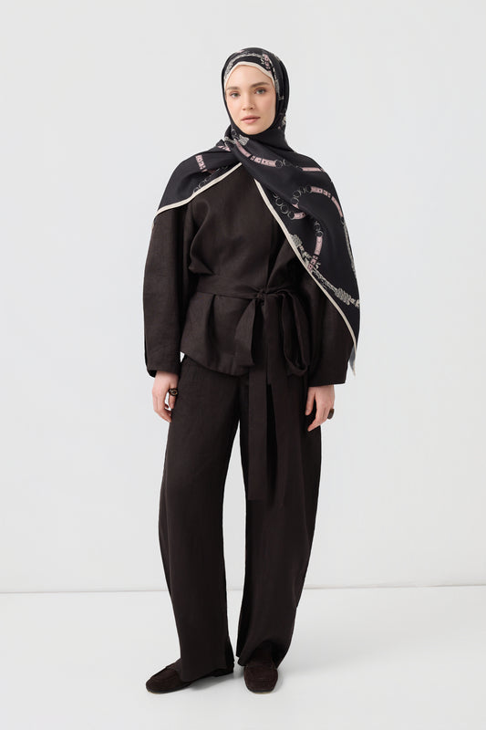 Cotton Twill Şal Linkage Mürdüm Eriği
