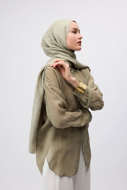 İpek Jakar Monogram Şal Zümrüt Yeşili