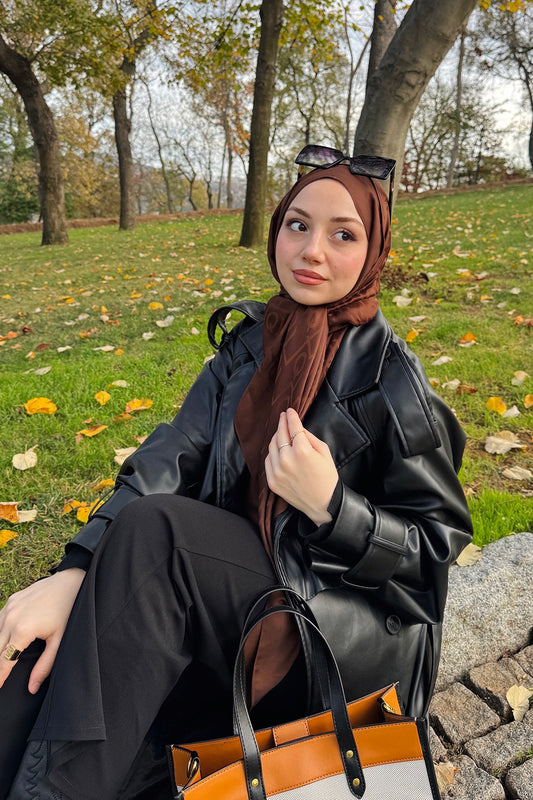 İpek Jakar Monogram Şal Acı Kahve