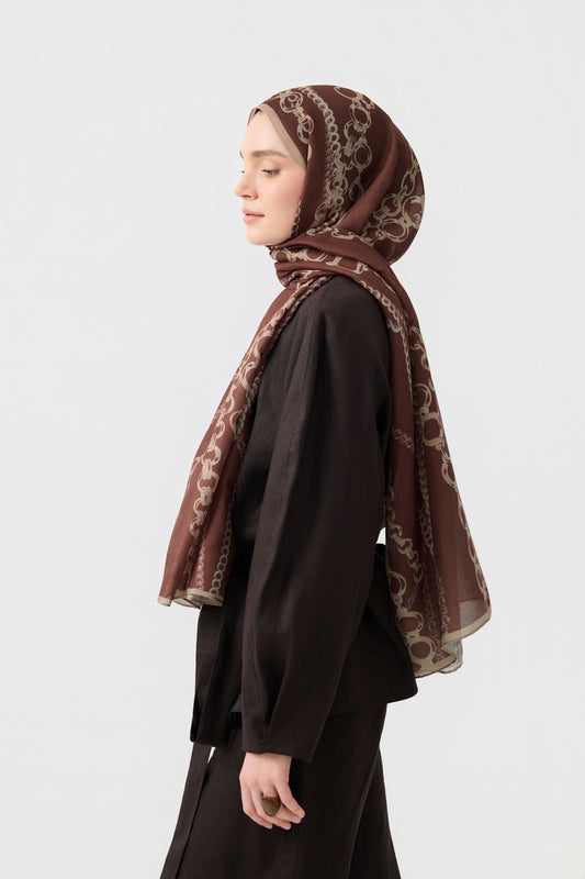 Cotton Twill Şal Loop Line Kızıl Kahve