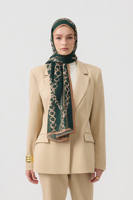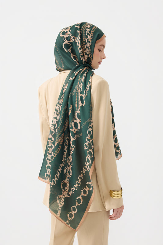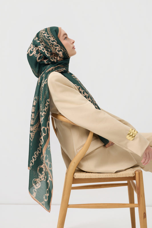 Cotton Twill Şal Loop Line Koyu Yeşil