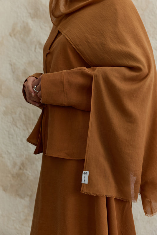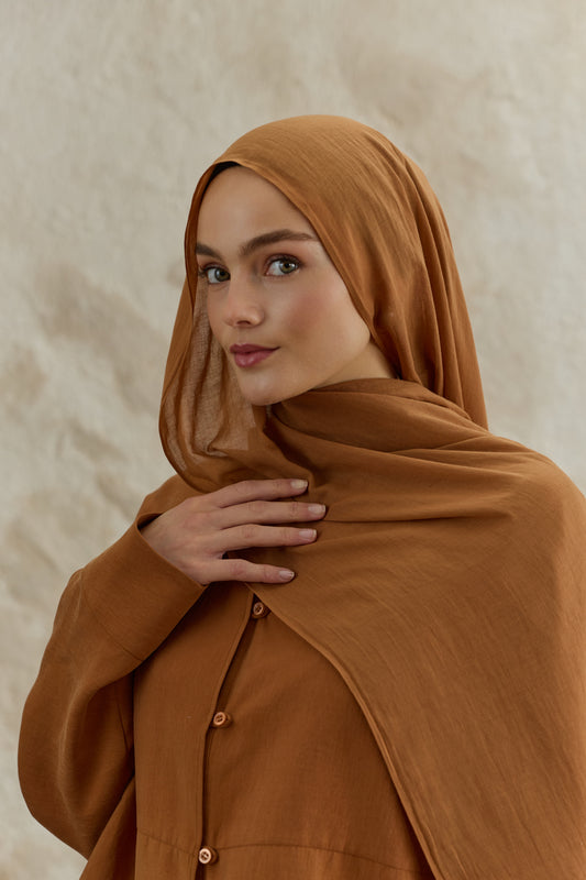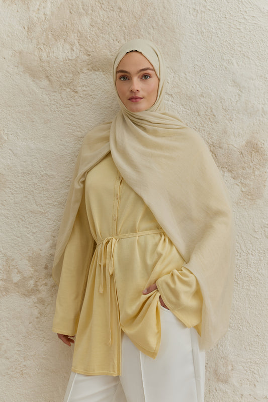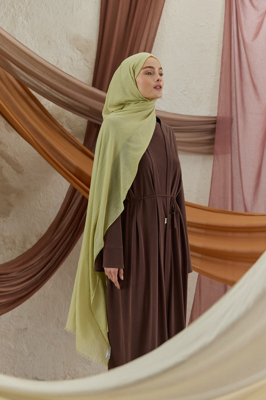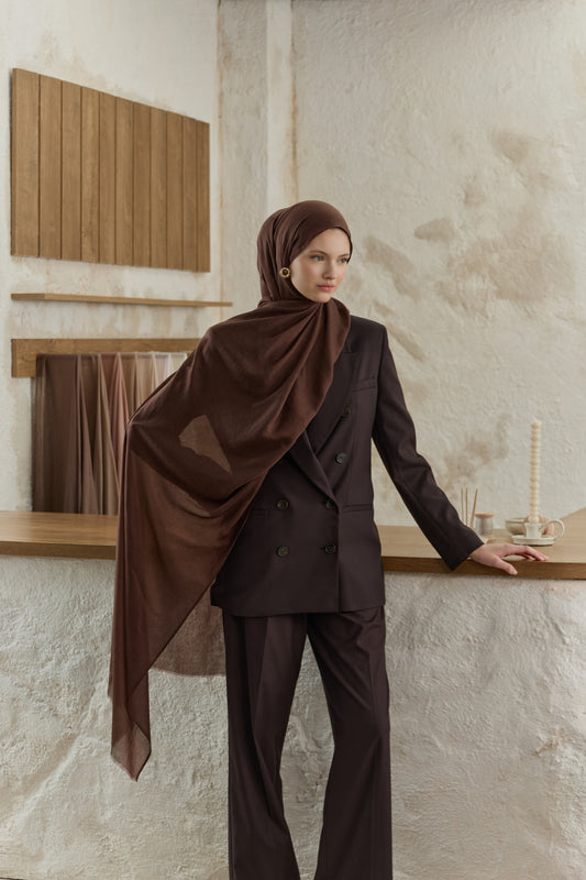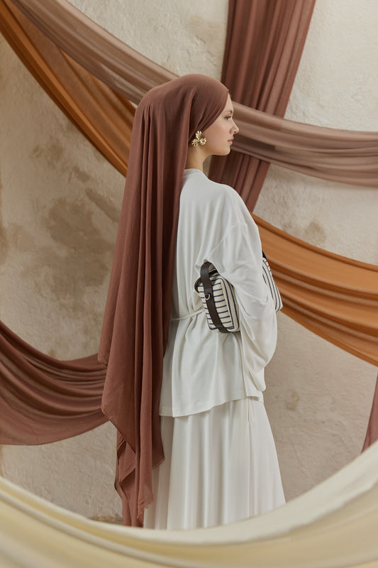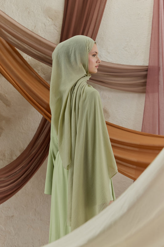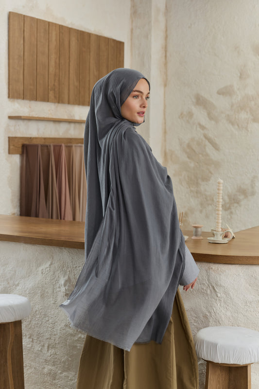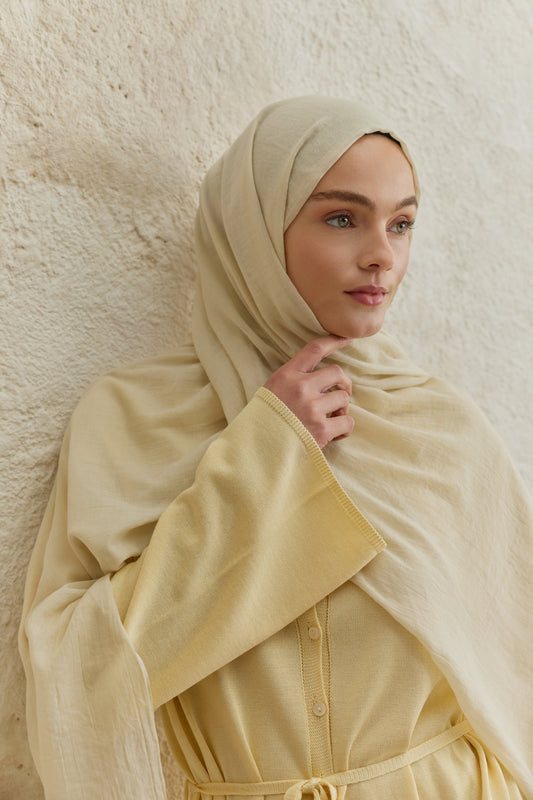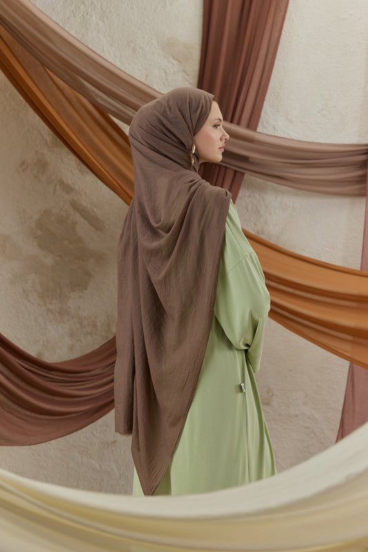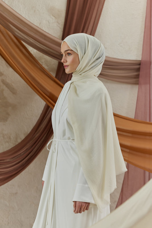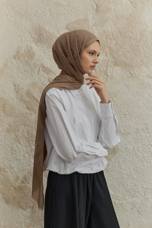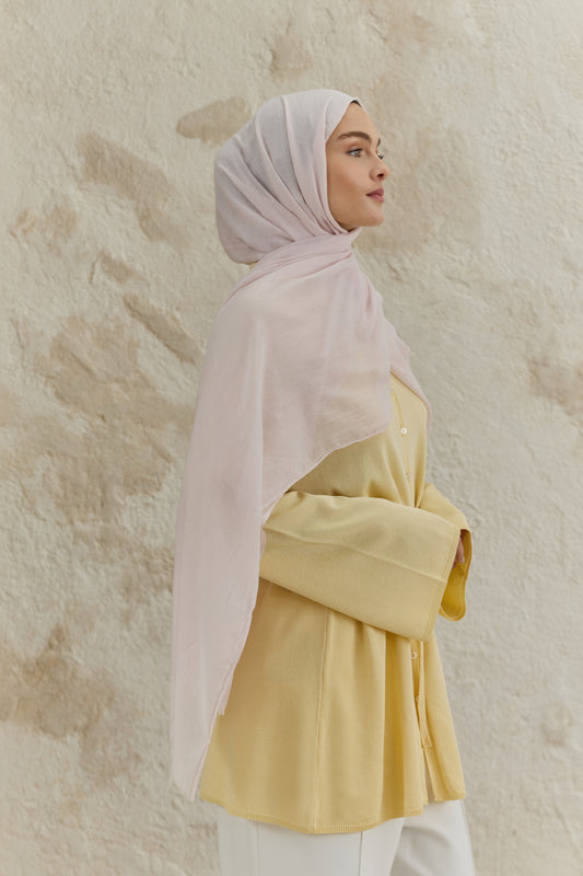 Soft Line serisini diğerlerinden ayıran en büyük fark, kumaşının getirdiği hazırlık kolaylığıdır. Ütü gerektirmeyen yapısı sayesinde en acele anlarınızda bile doğrudan kullanıma uygundur, kaymayan dokusuyla gün boyu hareket özgürlüğünüzü kısıtlamaz. 98x200 cm ölçülerindeki geniş formu, şalı dilediğiniz gibi şekillendirmenize imkan tanırken her zaman tok bir duruş sergiler. İster çift kat kullanarak daha dolgun bir hacim yakalayın ister tek katın hafifliğini tercih edin; Soft Line her bağlama stilinde formunu korumak için özenle tasarlandı.