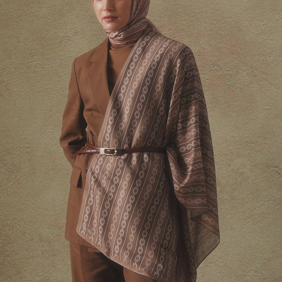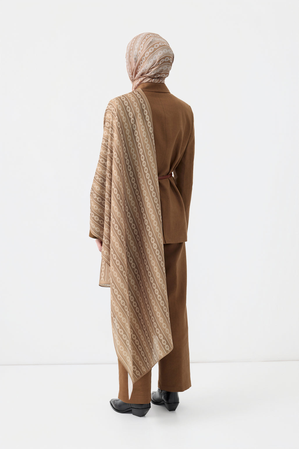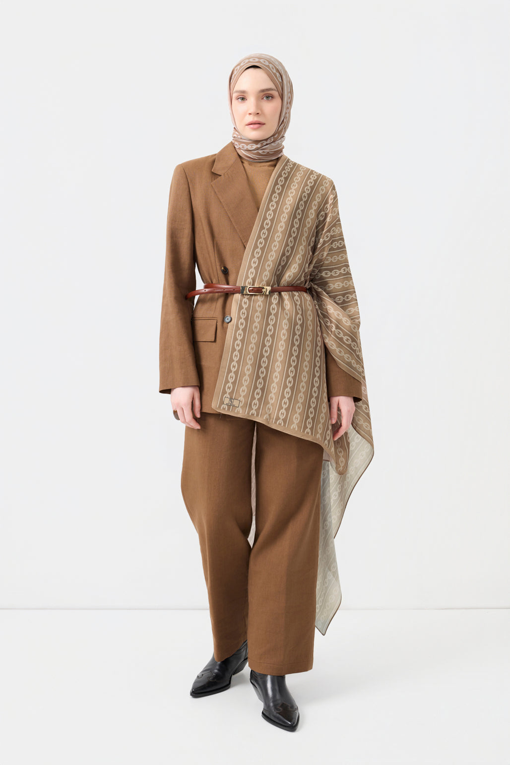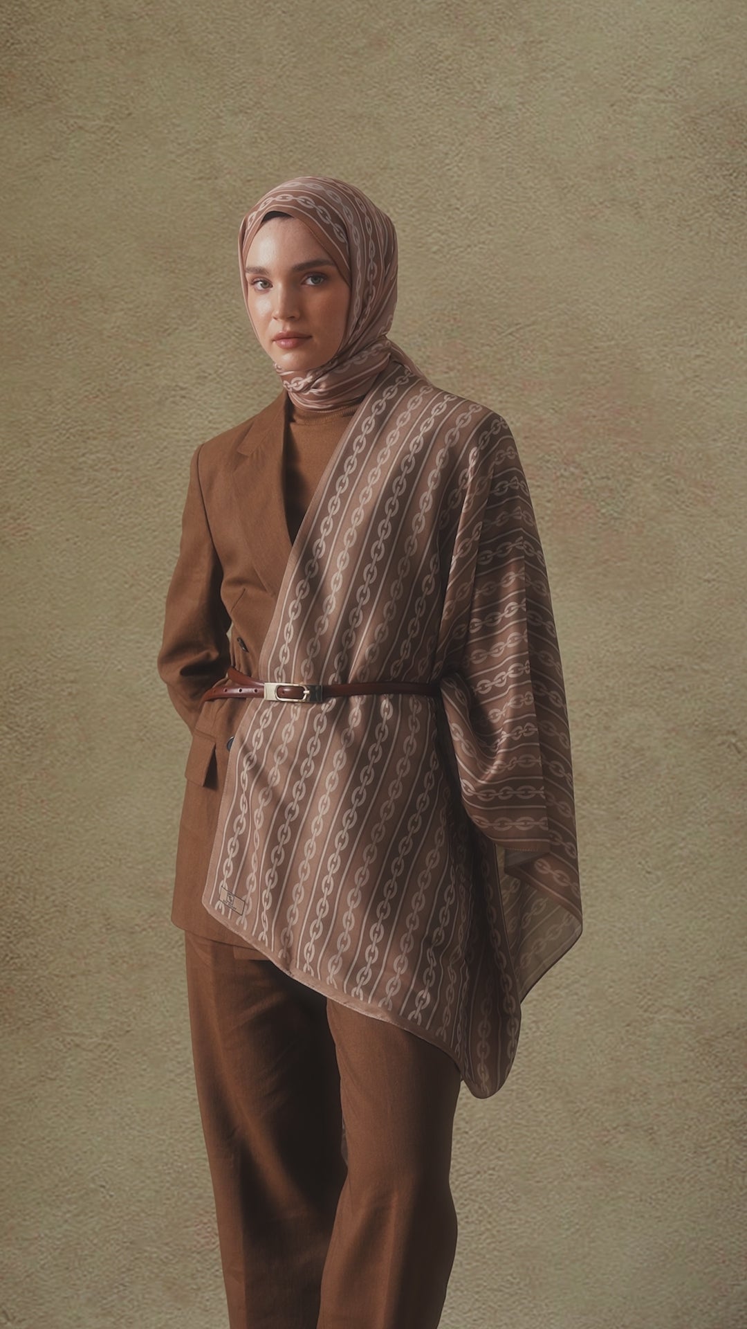 Cotton Twill Şal Chain Camel, modern ve zincir motifli desenleriyle tarzınızı yeniden şekillendirirken, tok ve akıcı twill dokusuyla şıklığınızı konforlu bir kullanım deneyimiyle bir araya getirir. Yüksek kaliteli pamuklu kumaşın hafifliği ve üstün hava geçirgenliği, cildinize nazikçe temas ederek gün boyu ferah bir his sunar. Chain serisinde titizlikle seçilmiş renk seçenekleri, her zevke ve tarza hitap ederek kombinlerinize dinamizm ve zarafet katar. Kayma yapmayan ve kolay şekil alan yapısıyla pratik bir kullanım sağlar. 70x185 cm ölçüleriyle farklı bağlama stillerine uyum sağlayarak her zevke uygun bir seçenek sunar. Günlük kombinlerden özel davetlere kadar her ortamda tarzınızı tamamlayan bu çok yönlü şal, ince detayları ve üstün işçiliğiyle gardırobunuzun vazgeçilmez parçalarından olmaya aday.