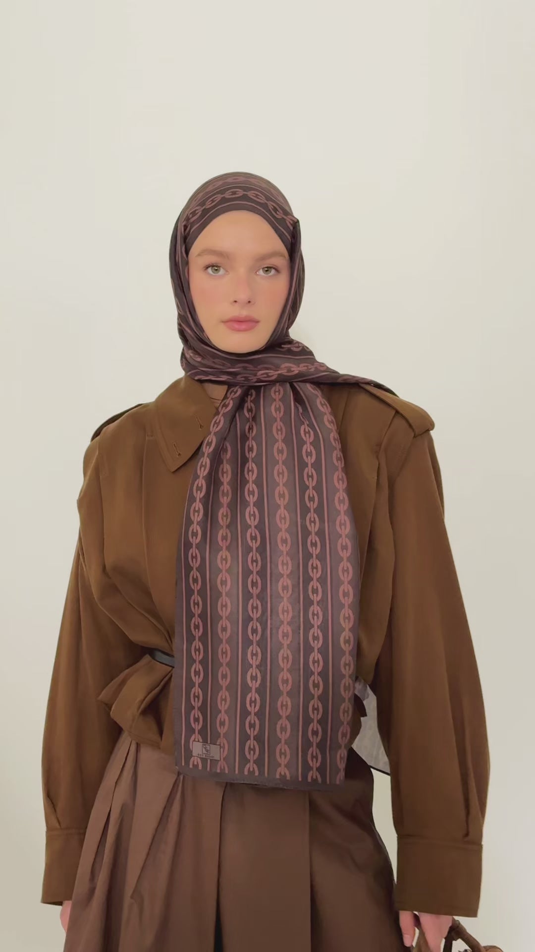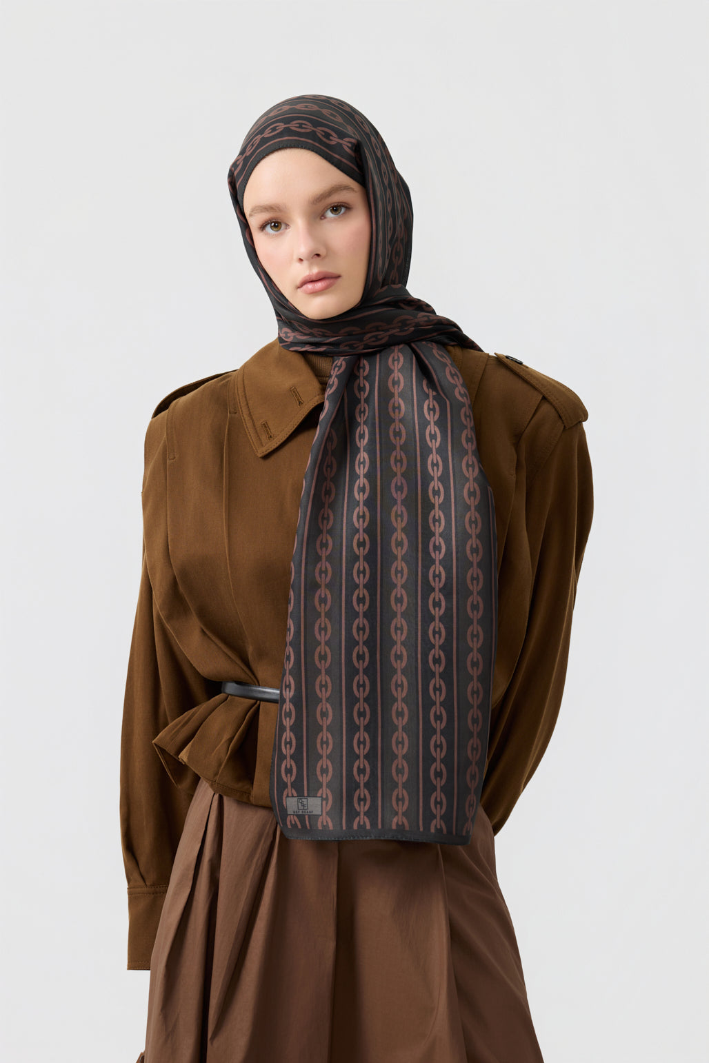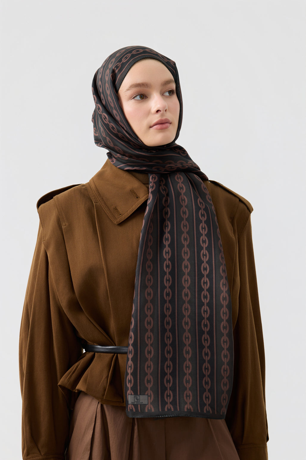 Cotton Twill Şal Chain Kahve modern ve zincir motifli desenleriyle tarzınızı yeniden şekillendirirken, tok ve akıcı twill dokusuyla şıklığınızı konforlu bir kullanım deneyimiyle bir araya getirir. Yüksek kaliteli pamuklu kumaşın hafifliği ve üstün hava geçirgenliği, cildinize nazikçe temas ederek gün boyu ferah bir his sunar. Chain serisinde titizlikle seçilmiş renk seçenekleri, her zevke ve tarza hitap ederek kombinlerinize dinamizm ve zarafet katar. Kayma yapmayan ve kolay şekil alan yapısıyla pratik bir kullanım sağlar. 70x185 cm ölçüleriyle farklı bağlama stillerine uyum sağlayarak her zevke uygun bir seçenek sunar. Günlük kombinlerden özel davetlere kadar her ortamda tarzınızı tamamlayan bu çok yönlü şal, ince detayları ve üstün işçiliğiyle gardırobunuzun vazgeçilmez parçalarından olmaya aday.
