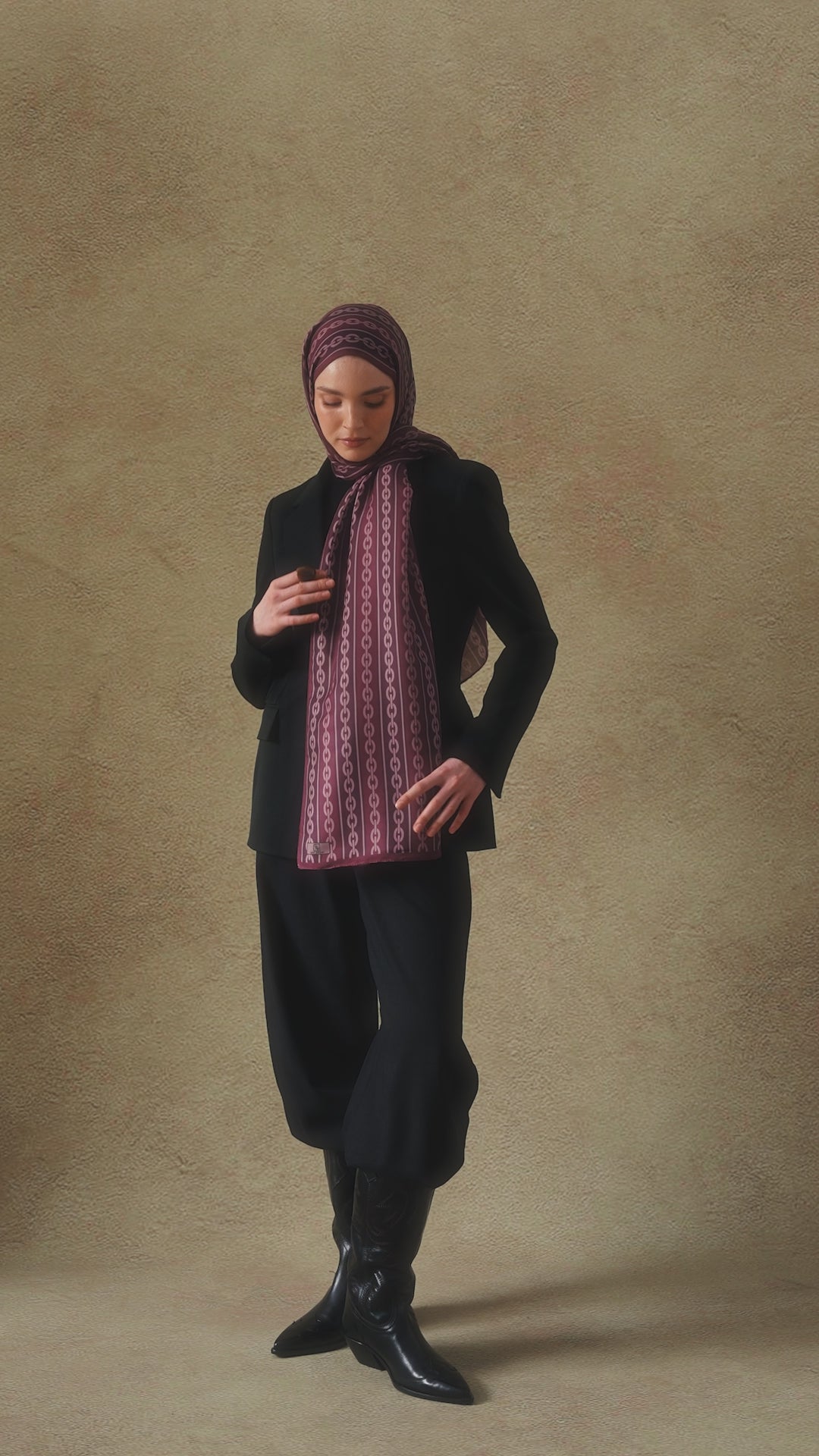 Cotton Twill Şal Chain Mürdüm, modern ve zincir motifli desenleriyle tarzınızı yeniden şekillendirirken, tok ve akıcı twill dokusuyla şıklığınızı konforlu bir kullanım deneyimiyle bir araya getirir. Yüksek kaliteli pamuklu kumaşın hafifliği ve üstün hava geçirgenliği, cildinize nazikçe temas ederek gün boyu ferah bir his sunar. Chain serisinde titizlikle seçilmiş renk seçenekleri, her zevke ve tarza hitap ederek kombinlerinize dinamizm ve zarafet katar. Kayma yapmayan ve kolay şekil alan yapısıyla pratik bir kullanım sağlar. 70x185 cm ölçüleriyle farklı bağlama stillerine uyum sağlayarak her zevke uygun bir seçenek sunar. Günlük kombinlerden özel davetlere kadar her ortamda tarzınızı tamamlayan bu çok yönlü şal, ince detayları ve üstün işçiliğiyle gardırobunuzun vazgeçilmez parçalarından olmaya aday.