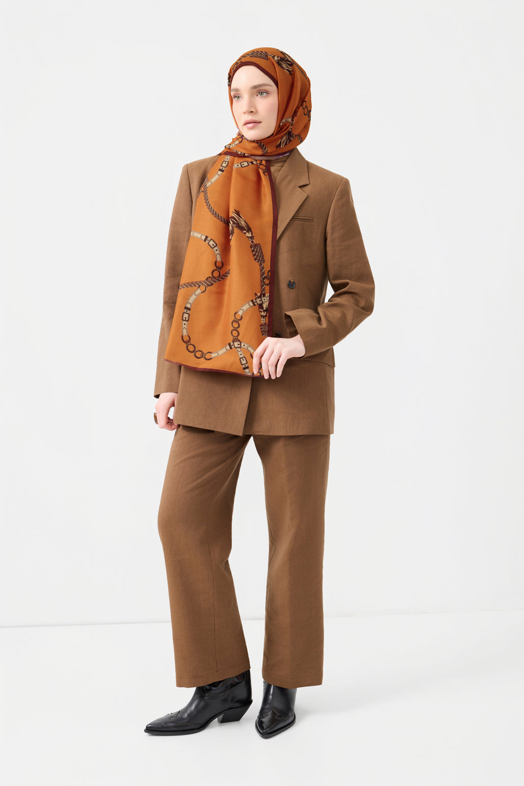 Cotton Twill Şal Linkage Orange, modern motifli desenleriyle tarzınızı yeniden tanımlarken, tok ve akıcı twill dokusuyla şıklığınızı konforlu bir kullanım deneyimiyle buluşturur. Yüksek kaliteli pamuklu kumaşın hafifliği ve üstün hava geçirgenliği, cildinize nazikçe temas ederek gün boyu ferah bir his sağlar. Linkage serisinde özenle seçilmiş premium renk seçenekleri, her zevke ve tarza hitap ederek kombinlerinize canlılık ve zarafet katar. Kayma yapmayan ve kolay şekil alan yapısıyla pratik bir kullanım sunar. 70x185 cm ölçüleriyle farklı bağlama stillerine uyum sağlayarak her zevke uygun bir seçenek sunar. Günlük kombinlerden özel davetlere kadar her ortamda tarzınızı tamamlayan bu çok yönlü şal, zarif detayları ve üstün işçiliğiyle gardırobunuzun favori parçalarından olmaya hazır.