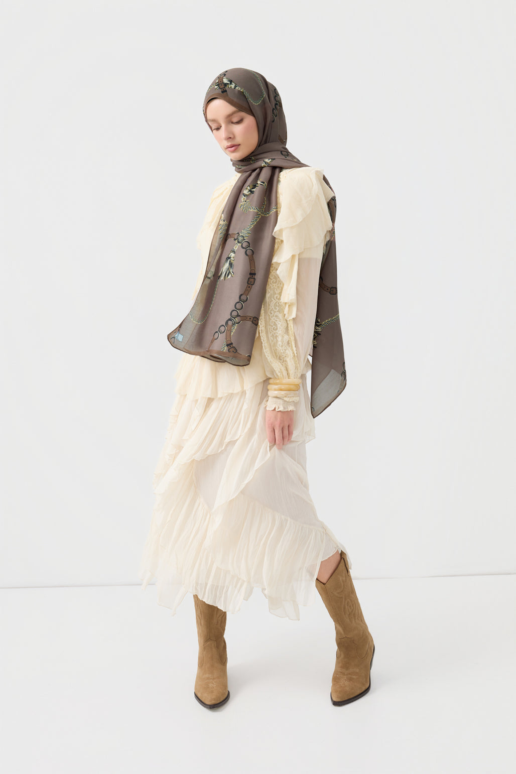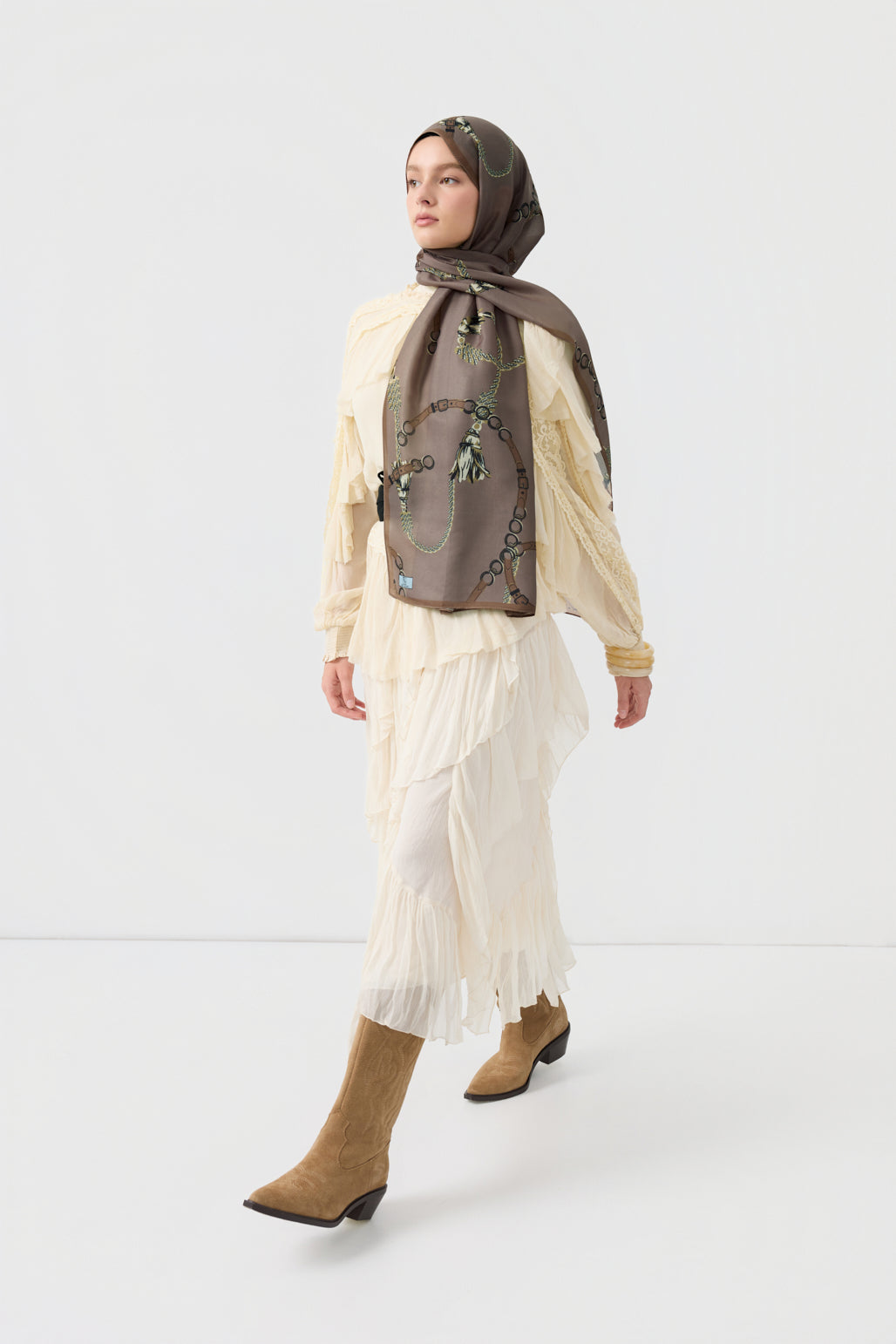 Cotton Twill Şal Linkage Soğuk Kahve, modern motifli desenleriyle tarzınızı yeniden tanımlarken, tok ve akıcı twill dokusuyla şıklığınızı konforlu bir kullanım deneyimiyle buluşturur. Yüksek kaliteli pamuklu kumaşın hafifliği ve üstün hava geçirgenliği, cildinize nazikçe temas ederek gün boyu ferah bir his sağlar. Linkage serisinde özenle seçilmiş premium renk seçenekleri, her zevke ve tarza hitap ederek kombinlerinize canlılık ve zarafet katar. Kayma yapmayan ve kolay şekil alan yapısıyla pratik bir kullanım sunar. 70x185 cm ölçüleriyle farklı bağlama stillerine uyum sağlayarak her zevke uygun bir seçenek sunar. Günlük kombinlerden özel davetlere kadar her ortamda tarzınızı tamamlayan bu çok yönlü şal, zarif detayları ve üstün işçiliğiyle gardırobunuzun favori parçalarından olmaya hazır.