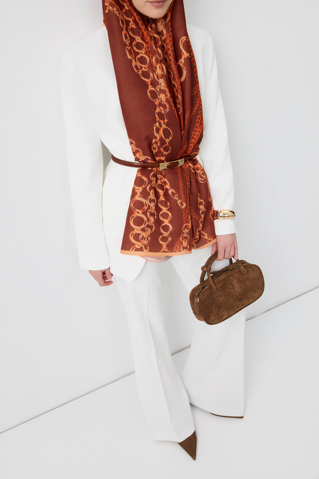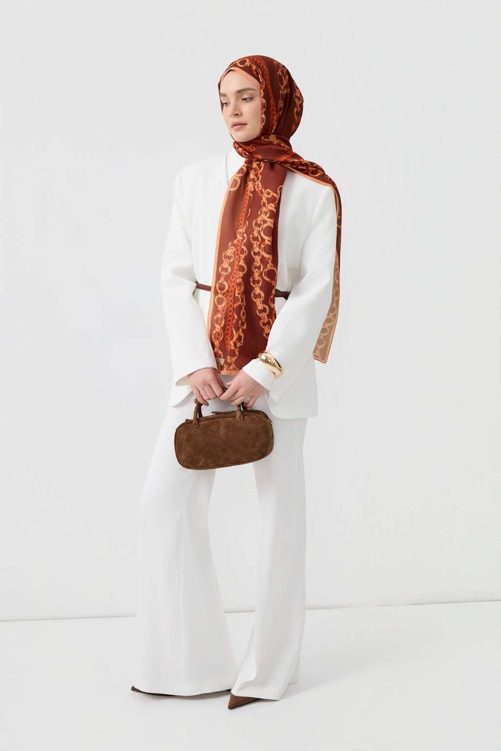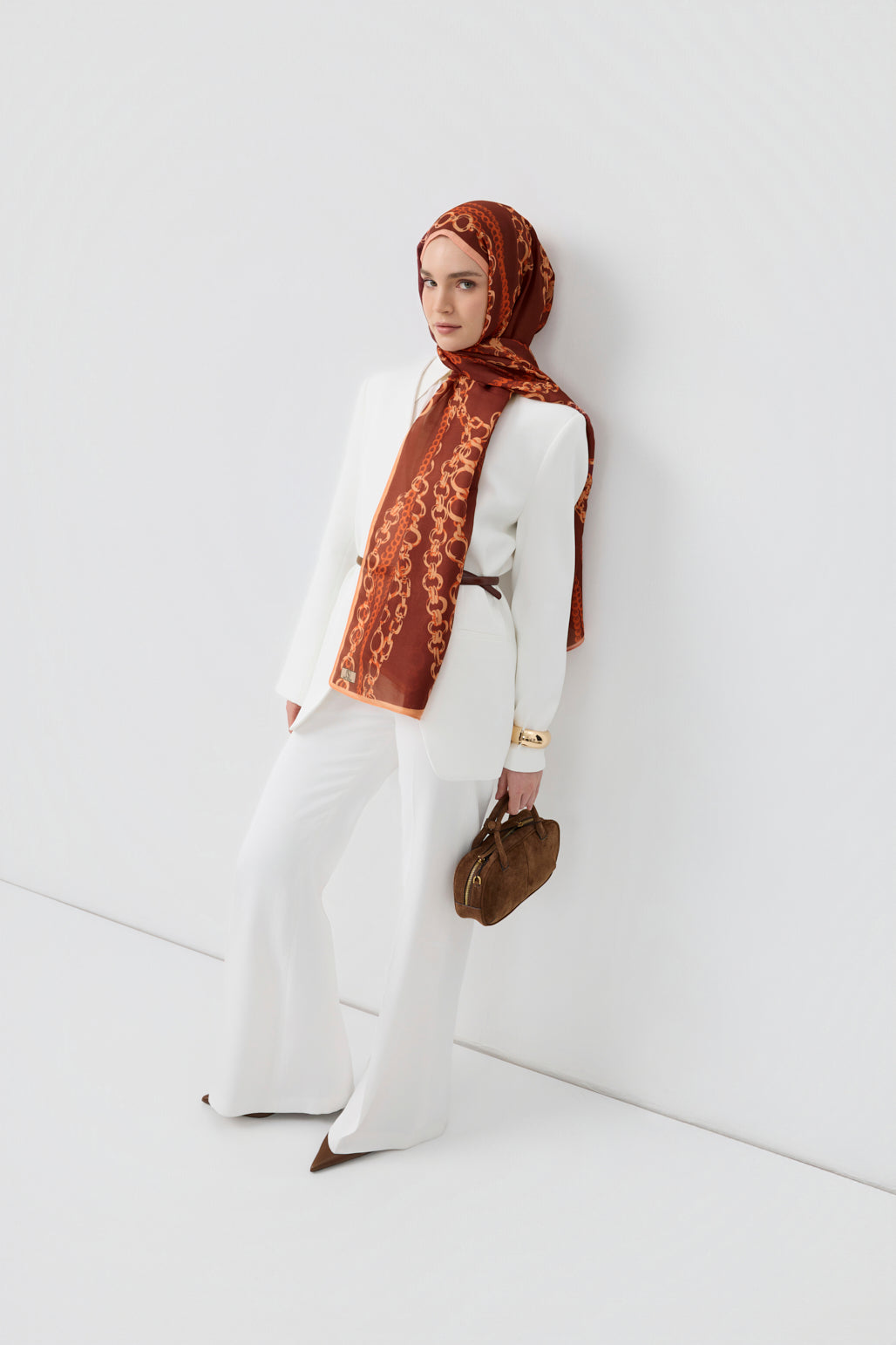 Cotton Twill Şal Loop Line Bordo, modern ve döngüsel çizgi desenleriyle tarzınızı yeniden şekillendirirken, tok ve akıcı twill dokusuyla şıklığınızı konforlu bir kullanım deneyimiyle birleştirir. Yüksek kaliteli pamuklu kumaşın hafifliği ve üstün hava geçirgenliği, cildinize nazikçe temas ederek gün boyu ferah bir his sunar. Loop Line serisinde özenle seçilmiş renk seçenekleri, her zevke ve tarza hitap ederek kombinlerinize dinamizm ve zarafet katar. Kayma yapmayan ve kolay şekil alan yapısıyla pratik bir kullanım sağlar. 70x185 cm ölçüleriyle farklı bağlama stillerine uyum sağlayarak her zevke uygun bir seçenek sunar. Günlük kombinlerden özel davetlere kadar her ortamda tarzınızı tamamlayan bu çok yönlü şal, ince detayları ve üstün işçiliğiyle gardırobunuzun vazgeçilmez parçalarından olmaya aday.