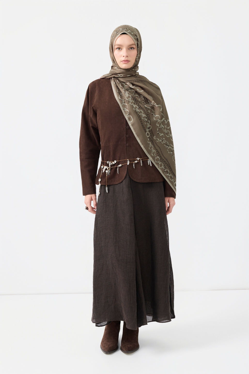 Cotton Twill Şal Loop Line Sütlü Kahve