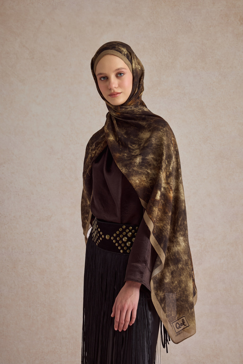 Batic Kahve desenli şal, zamansız desenleriyle stiline eşlik etmeye hazır.