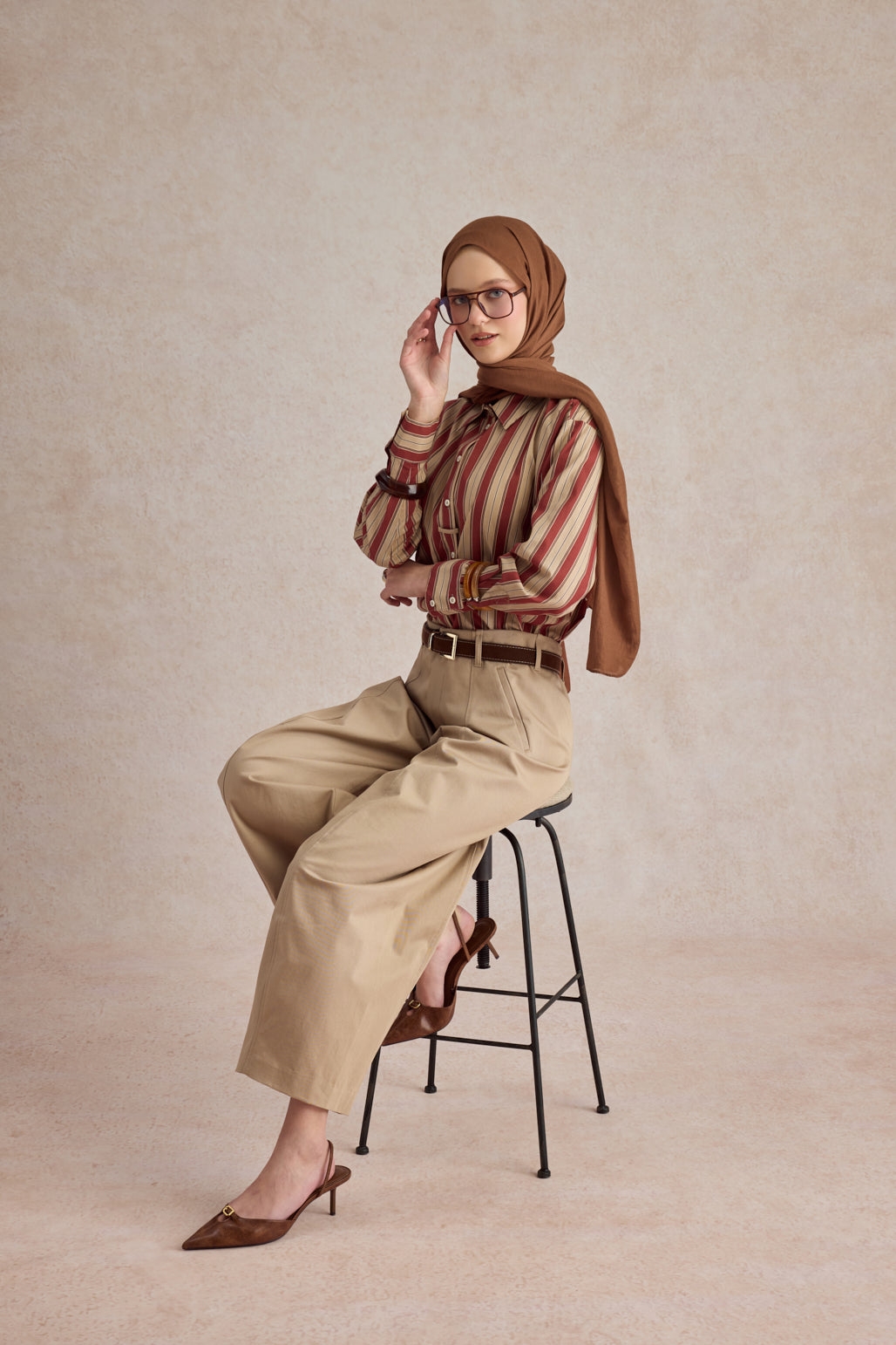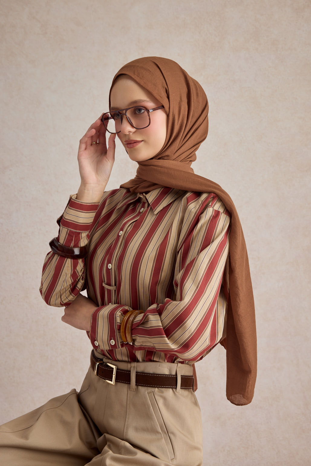 Organik Crash Şal Çikolata Kahve, pamuklu dokusuyla hafifliği ve nefes alabilir yapıyı bir araya getirir. Cilde temas eden yumuşak yüzeyi gün boyu rahatlık sunarken, organik yapısı doğal bir zarafet katar. Kendine özgü kırışık dokusu ütü gerektirmeden kullanılabilir, şehir hayatının temposuna kolayca uyum sağlar. Hafif yapısıyla yaz günlerinde ferahlık, serin akşamlarda ise zarif bir tamamlayıcı olur. Günlük kombinlere modern bir dokunuş katar, özel günlerde de sade bir şıklık sunar. Doğal formu ve pratik kullanımıyla Organik Kırışık Şal, gardıroplarda zamansız bir yer edinir.