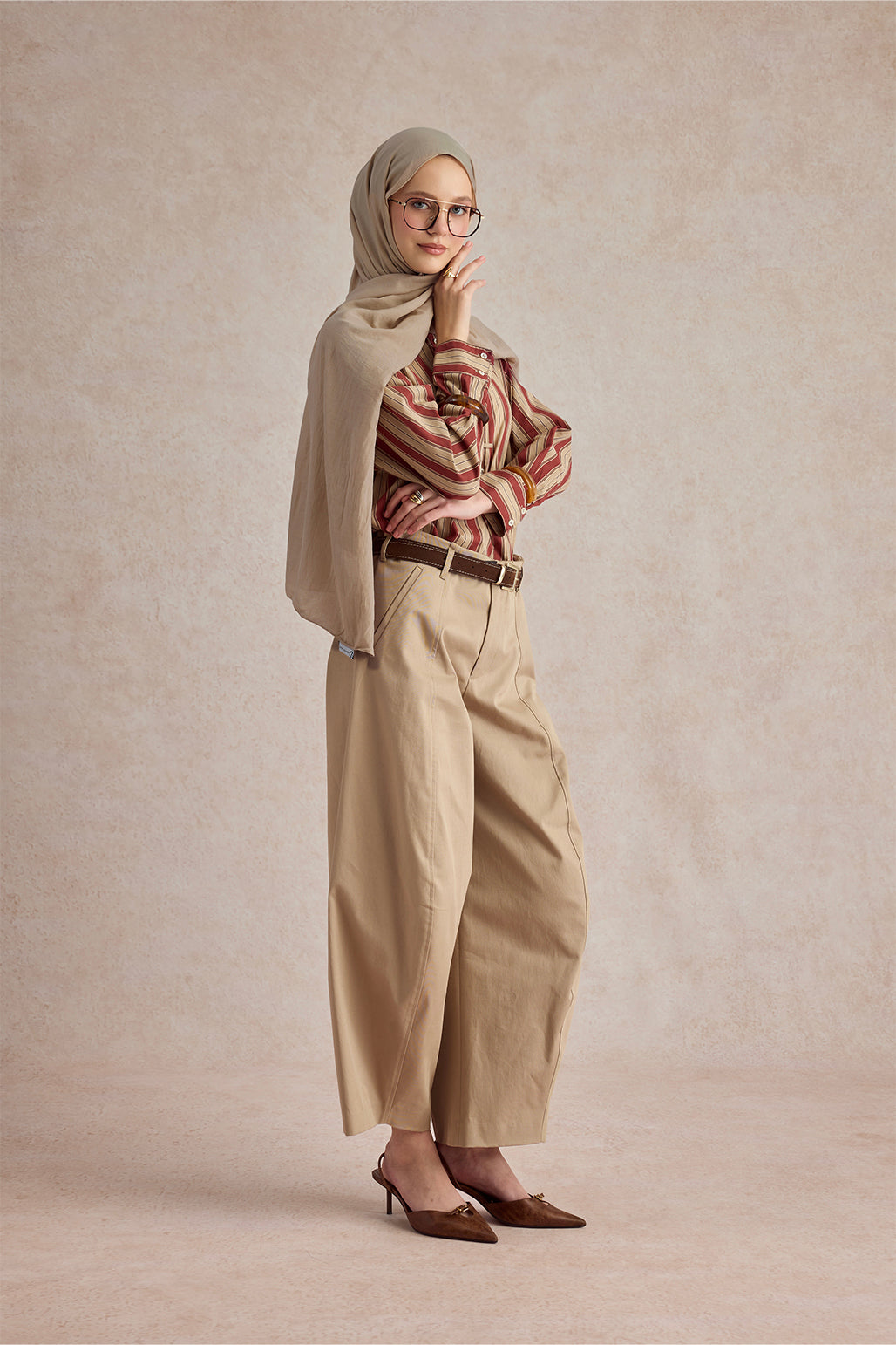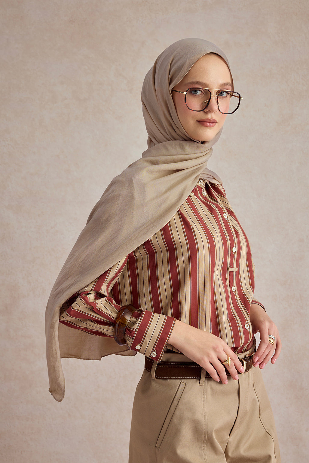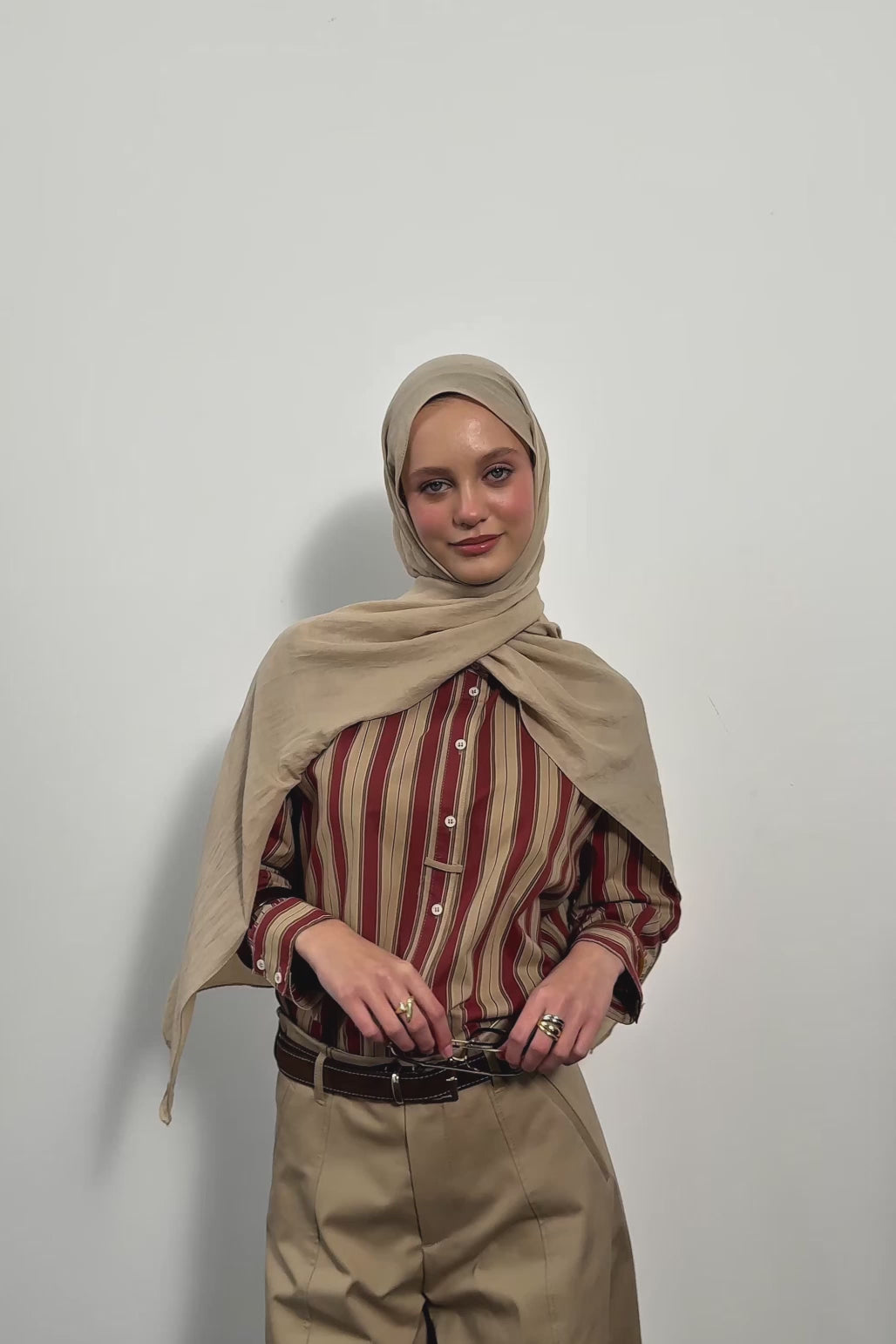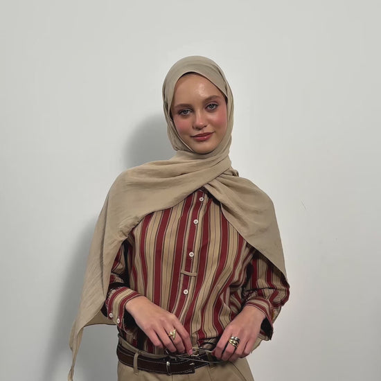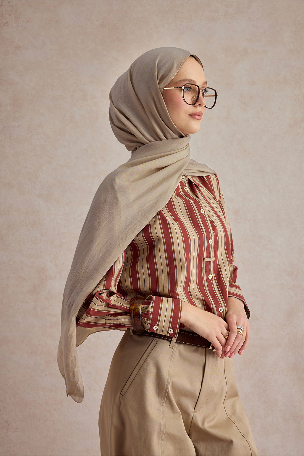 Organik Crash Şal Deve Tüyü, pamuklu dokusuyla hafifliği ve nefes alabilir yapıyı bir araya getirir. Cilde temas eden yumuşak yüzeyi gün boyu rahatlık sunarken, organik yapısı doğal bir zarafet katar. Kendine özgü kırışık dokusu ütü gerektirmeden kullanılabilir, şehir hayatının temposuna kolayca uyum sağlar. Hafif yapısıyla yaz günlerinde ferahlık, serin akşamlarda ise zarif bir tamamlayıcı olur. Günlük kombinlere modern bir dokunuş katar, özel günlerde de sade bir şıklık sunar. Doğal formu ve pratik kullanımıyla Organik Kırışık Şal, gardıroplarda zamansız bir yer edinir.
