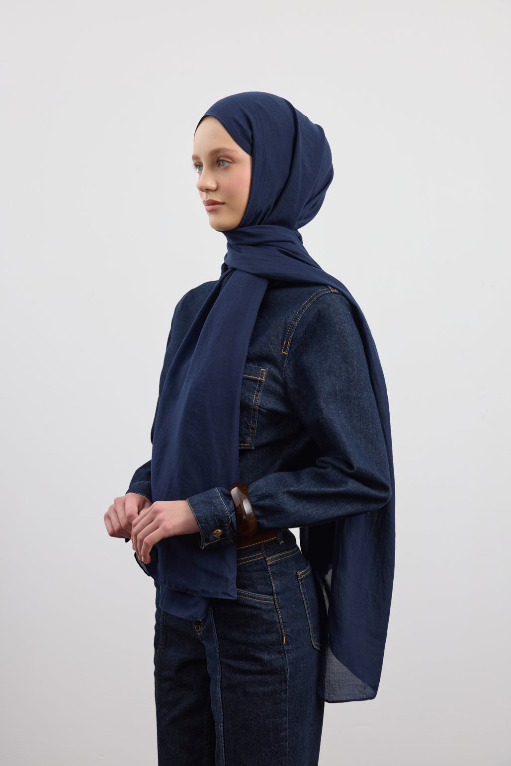 Organik Crash Şal Lacivert, pamuklu dokusuyla hafifliği ve nefes alabilir yapıyı bir araya getirir. Cilde temas eden yumuşak yüzeyi gün boyu rahatlık sunarken, organik yapısı doğal bir zarafet katar. Kendine özgü kırışık dokusu ütü gerektirmeden kullanılabilir, şehir hayatının temposuna kolayca uyum sağlar. Hafif yapısıyla yaz günlerinde ferahlık, serin akşamlarda ise zarif bir tamamlayıcı olur. Günlük kombinlere modern bir dokunuş katar, özel günlerde de sade bir şıklık sunar. Doğal formu ve pratik kullanımıyla Organik Kırışık Şal, gardıroplarda zamansız bir yer edinir.