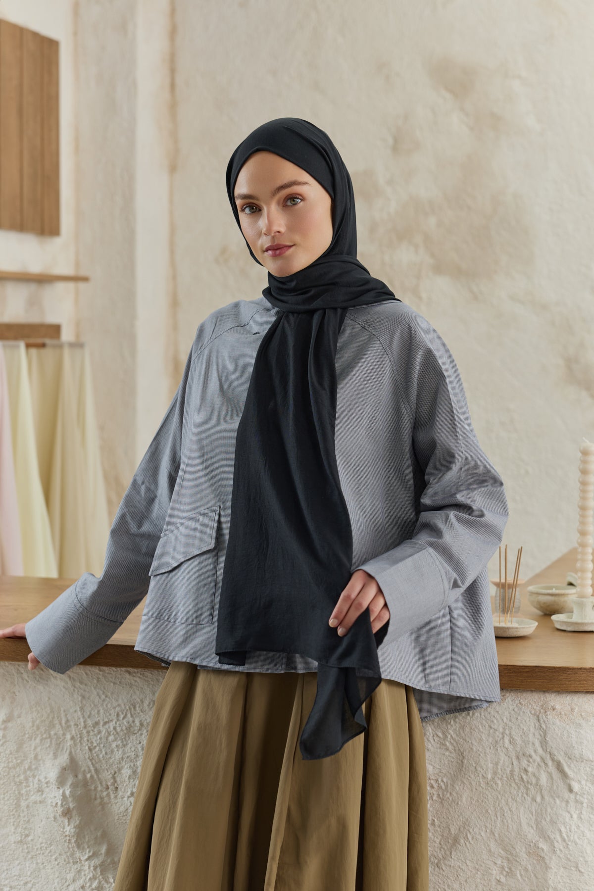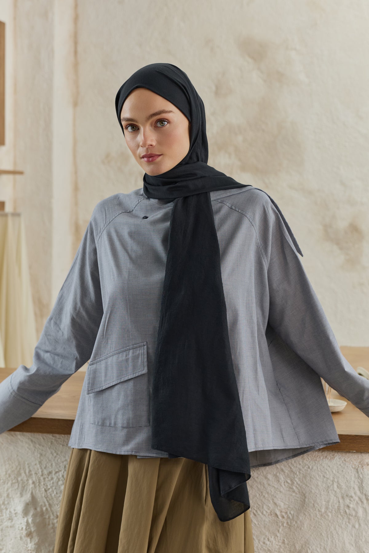 Organik Crash Şal Siyah, pamuklu dokusuyla hafifliği ve nefes alabilir yapıyı bir araya getirir. Cilde temas eden yumuşak yüzeyi gün boyu rahatlık sunarken, organik yapısı doğal bir zarafet katar. Kendine özgü kırışık dokusu ütü gerektirmeden kullanılabilir, şehir hayatının temposuna kolayca uyum sağlar. Hafif yapısıyla yaz günlerinde ferahlık, serin akşamlarda ise zarif bir tamamlayıcı olur. Günlük kombinlere modern bir dokunuş katar, özel günlerde de sade bir şıklık sunar. Doğal formu ve pratik kullanımıyla Organik Kırışık Şal, gardıroplarda zamansız bir yer edinir.