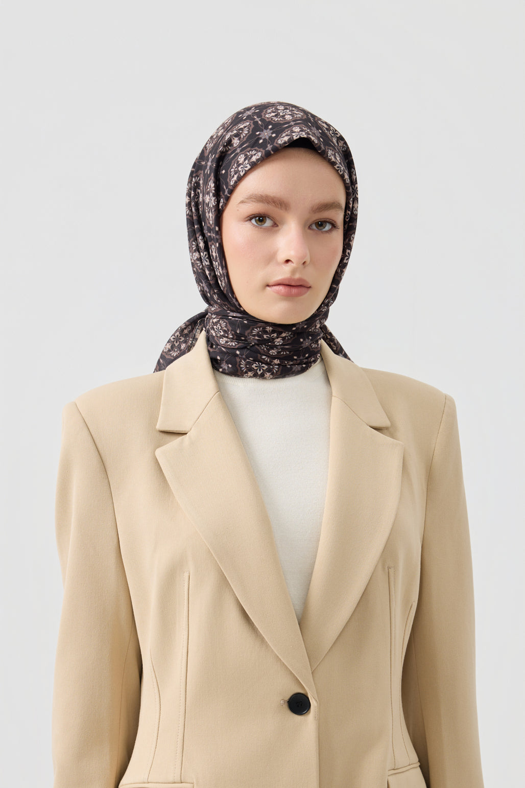 Desenli Pamuk Eşarp - Medallion Desen Serisi, klasik motiflerden ilham alan otantik ve simgesel tasarım detayları ile öne çıkmaktadır. Detaylı çizgiler ve geometrik form geçişleri, seride bulunan modellere sofistike bir hareketlilik katarken, motifler eşarbın tasarımına derinlik ve karakter kazandırır.