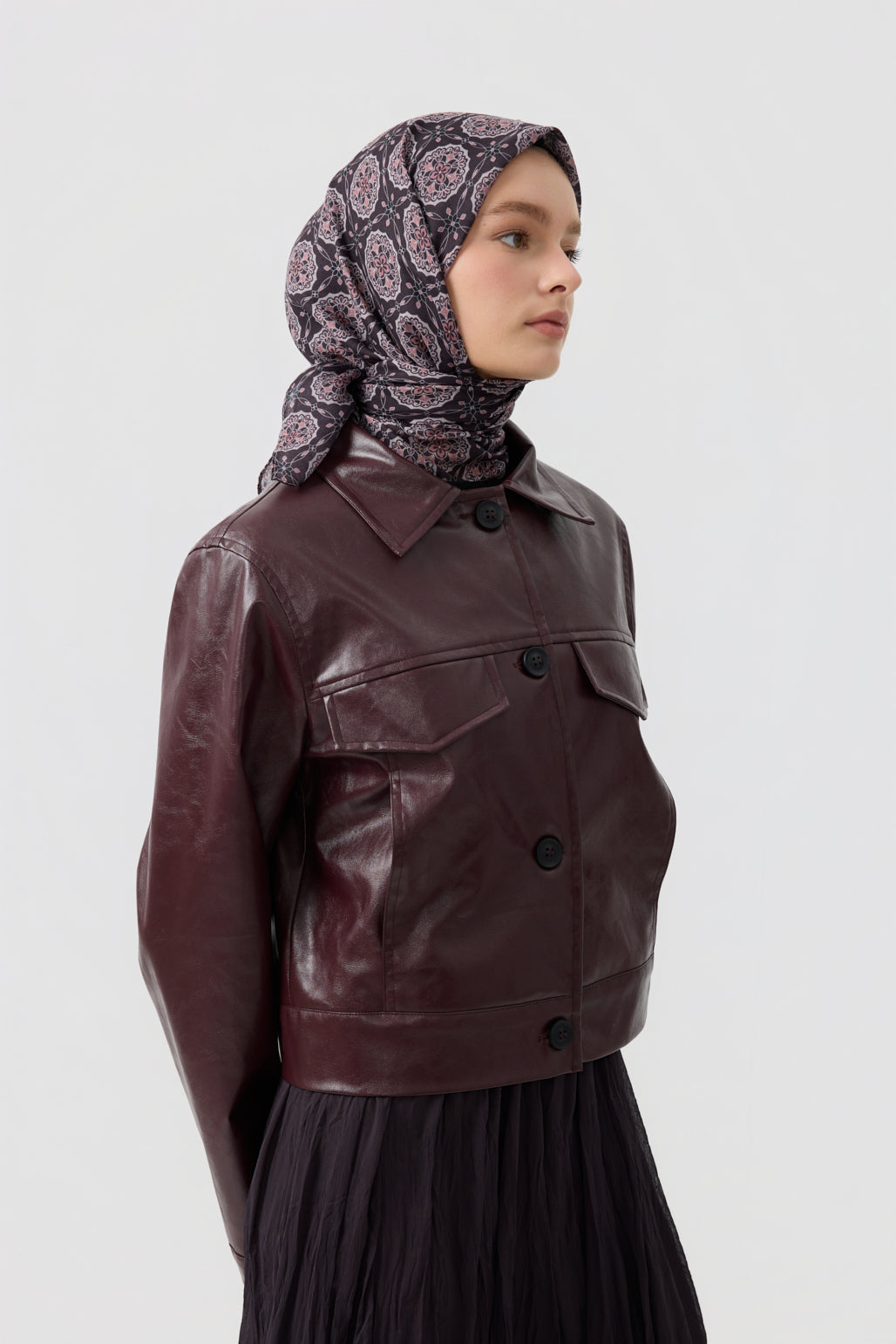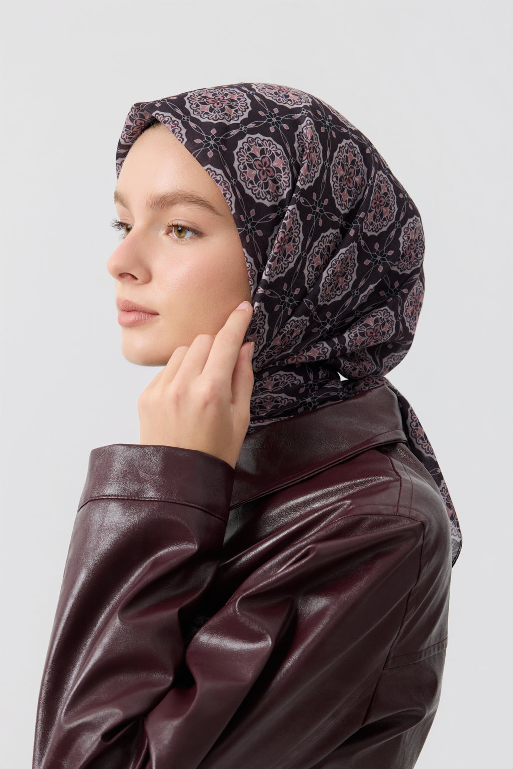 Pamuk Eşarp Medallion Mürdüm Eriği