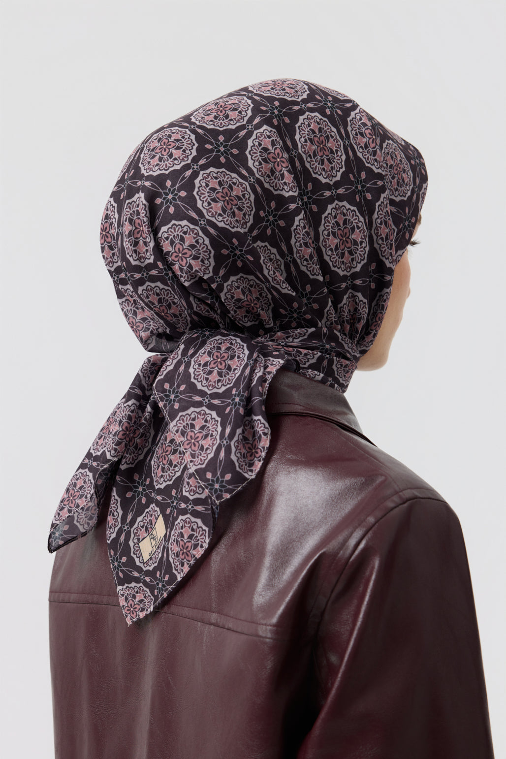 Desenli Pamuk Eşarp - Medallion Desen Serisi, klasik motiflerden ilham alan otantik ve simgesel tasarım detayları ile öne çıkmaktadır. Detaylı çizgiler ve geometrik form geçişleri, seride bulunan modellere sofistike bir hareketlilik katarken, motifler eşarbın tasarımına derinlik ve karakter kazandırır.