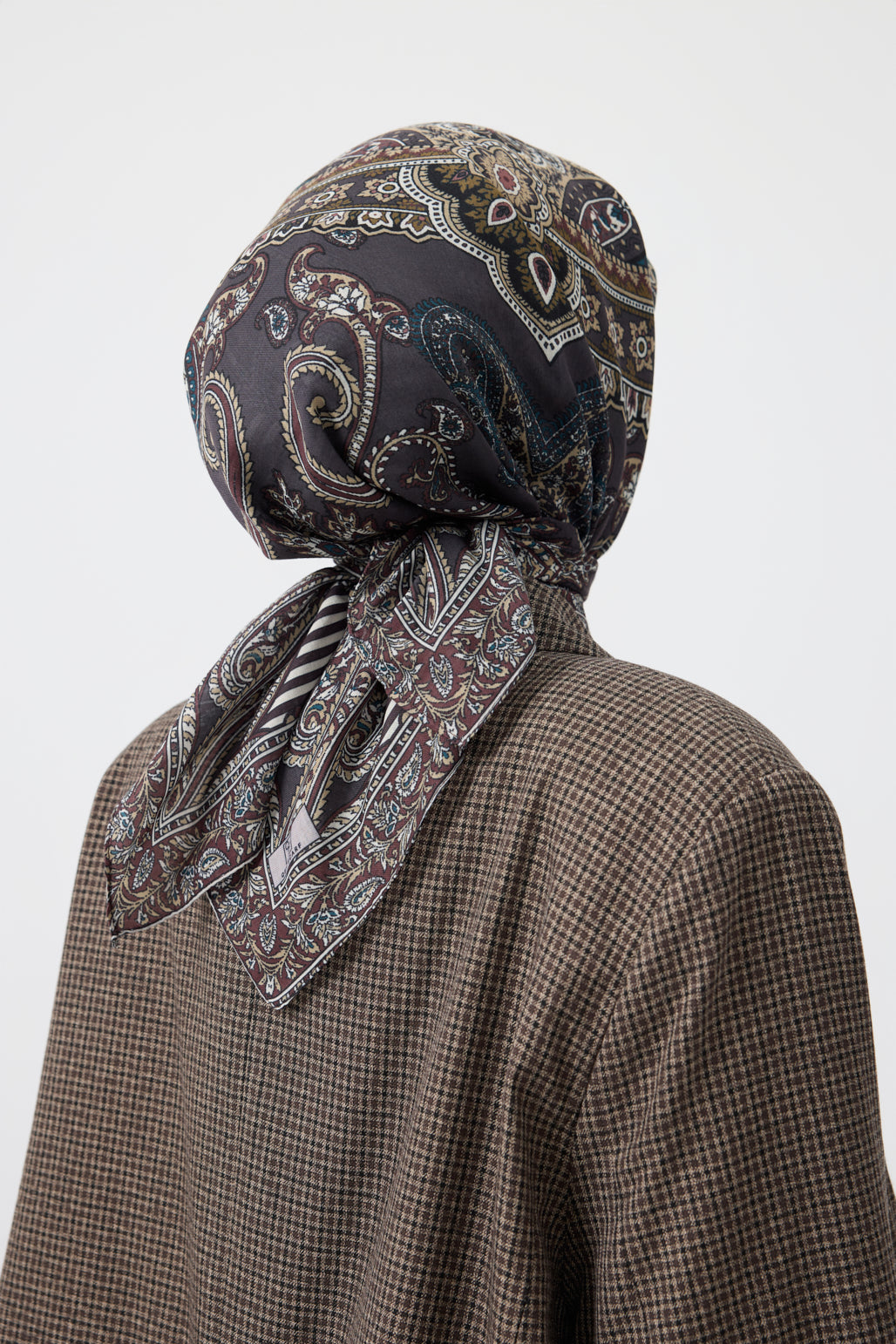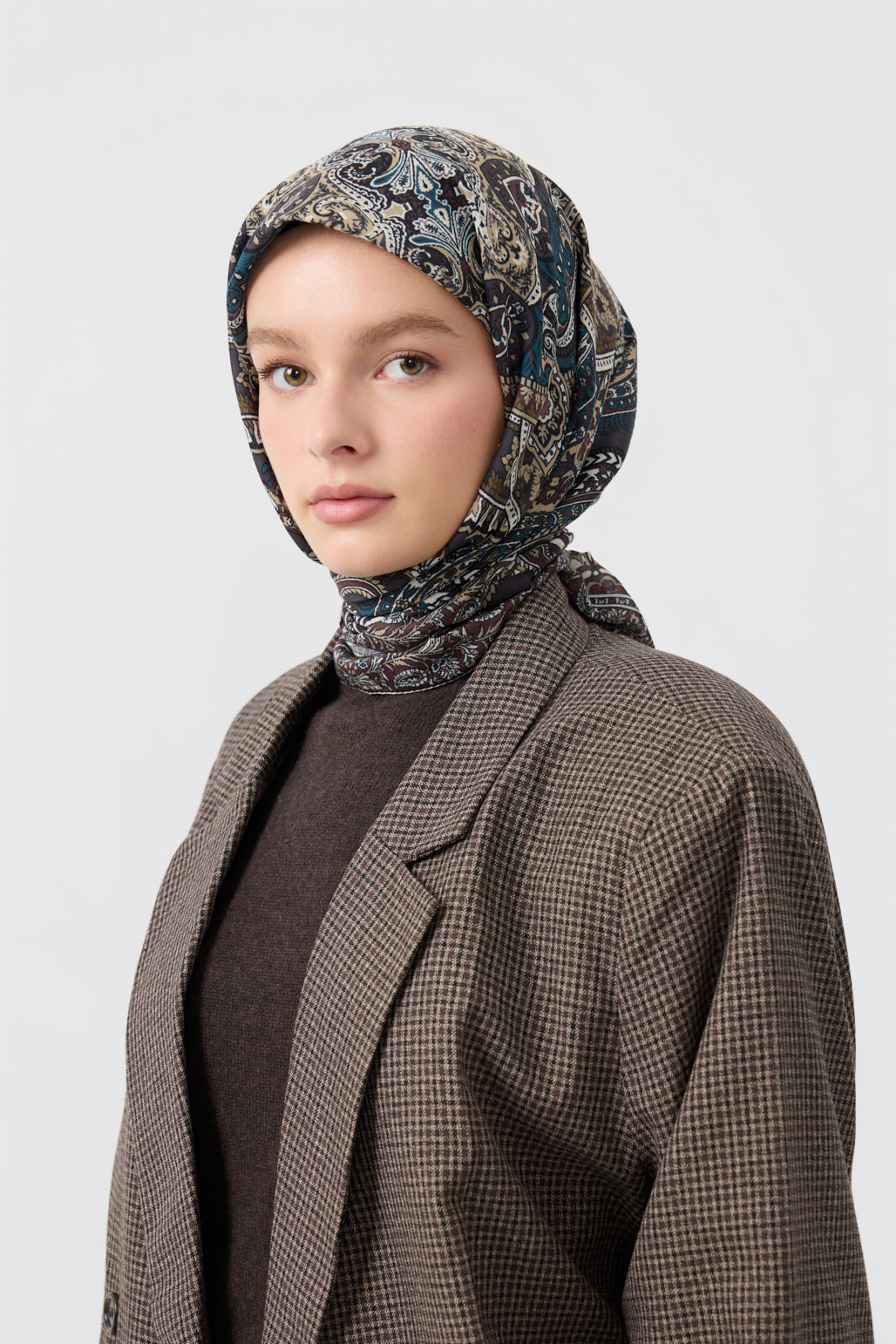 Desenli Pamuk Eşarp - Tale Desen Serisi, her detayıyla bir hikâye anlatan masalsı desenleriyle ön plana çıkıyor. Zarif motifler ve akıcı çizgiler, eşarbın her kıvrımına derinlik ve karakter kazandırırken, stilinize sofistike bir dokunuş ekliyor.