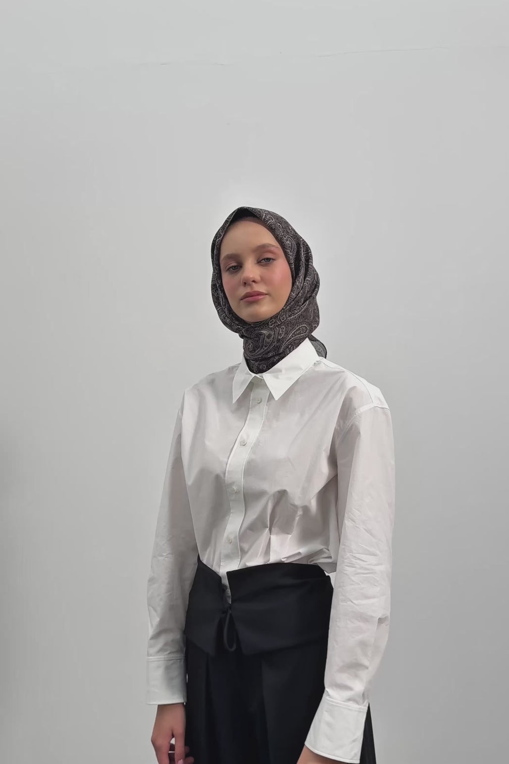 Desenli Pamuk Eşarp - Timeless Desen Serisi, zamansız desenleri ve koyu ile pastel tonlardaki renk seçenekleriyle ön plana çıkmaktadır. Dikkat çekici motifleri ve dengeli geçişleri, serideki modellere hareketlilik katarken, tasarımın uyumu eşarbın şık bir görünüm kazanmasını sağlar.