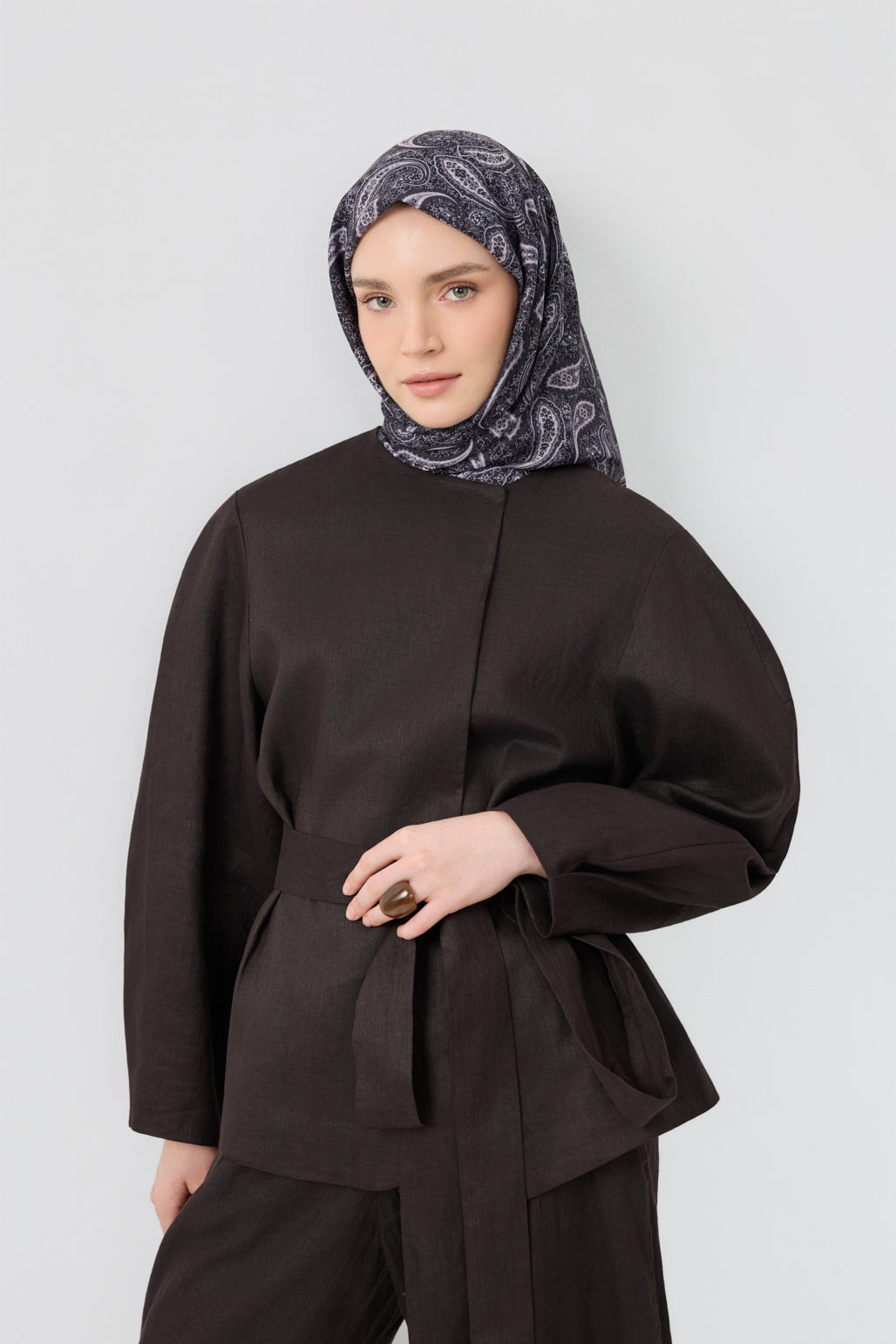 Desenli Pamuk Eşarp - Timeless Desen Serisi, zamansız desenleri ve koyu ile pastel tonlardaki renk seçenekleriyle ön plana çıkmaktadır. Dikkat çekici motifleri ve dengeli geçişleri, serideki modellere hareketlilik katarken, tasarımın uyumu eşarbın şık bir görünüm kazanmasını sağlar.