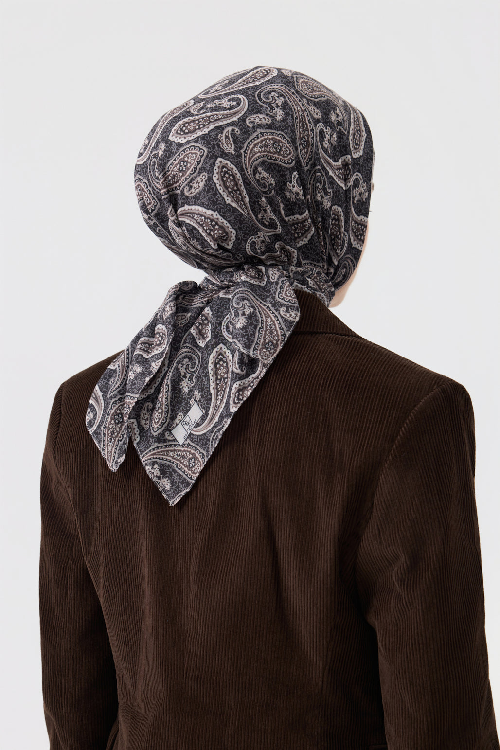 Desenli Pamuk Eşarp - Timeless Desen Serisi, zamansız desenleri ve koyu ile pastel tonlardaki renk seçenekleriyle ön plana çıkmaktadır. Dikkat çekici motifleri ve dengeli geçişleri, serideki modellere hareketlilik katarken, tasarımın uyumu eşarbın şık bir görünüm kazanmasını sağlar.