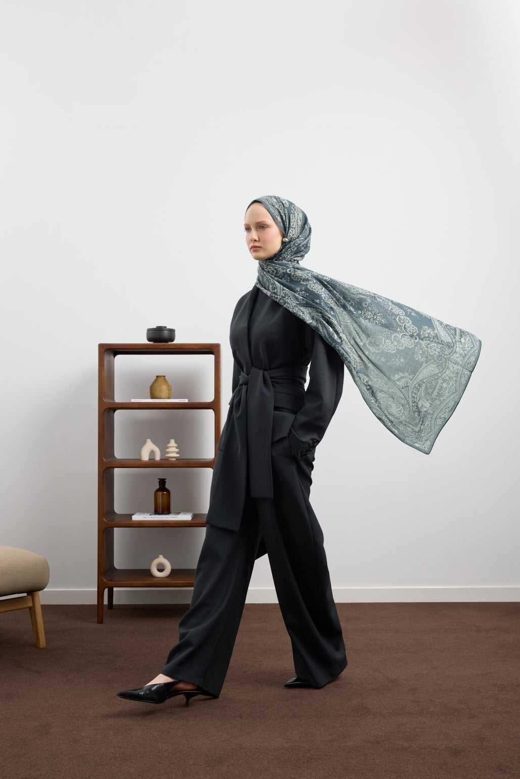 Pamuklu Şal Flow Antrasit, yüksek kaliteli pamuk ve elyaf karışımından üretilen özel kumaşıyla son derece hafif, nefes alan ve ciltle uyumlu bir yapı sunuyor. Flow desenlerinin akıcı kıvrımları ile dalgalı çizgileri, özellikle bohem esintili kombinler yaratmak istediğinizde bu modeli sizin için özel bir seçenek haline getiriyor. Üstelik 70x185 cm ölçüleri sayesinde, yüz tipinize veya oluşturmak istediğiniz farklı kombinlere uygun çeşitli bağlama stillerine kolayca uyum sağlıyor.