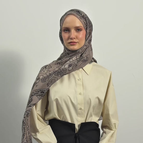 Pamuklu Şal Flow Taş, yüksek kaliteli pamuk ve elyaf karışımından üretilen özel kumaşıyla son derece hafif, nefes alan ve ciltle uyumlu bir yapı sunuyor. Flow desenlerinin akıcı kıvrımları ile dalgalı çizgileri, özellikle bohem esintili kombinler yaratmak istediğinizde bu modeli sizin için özel bir seçenek haline getiriyor. Üstelik 70x185 cm ölçüleri sayesinde, yüz tipinize veya oluşturmak istediğiniz farklı kombinlere uygun çeşitli bağlama stillerine kolayca uyum sağlıyor.