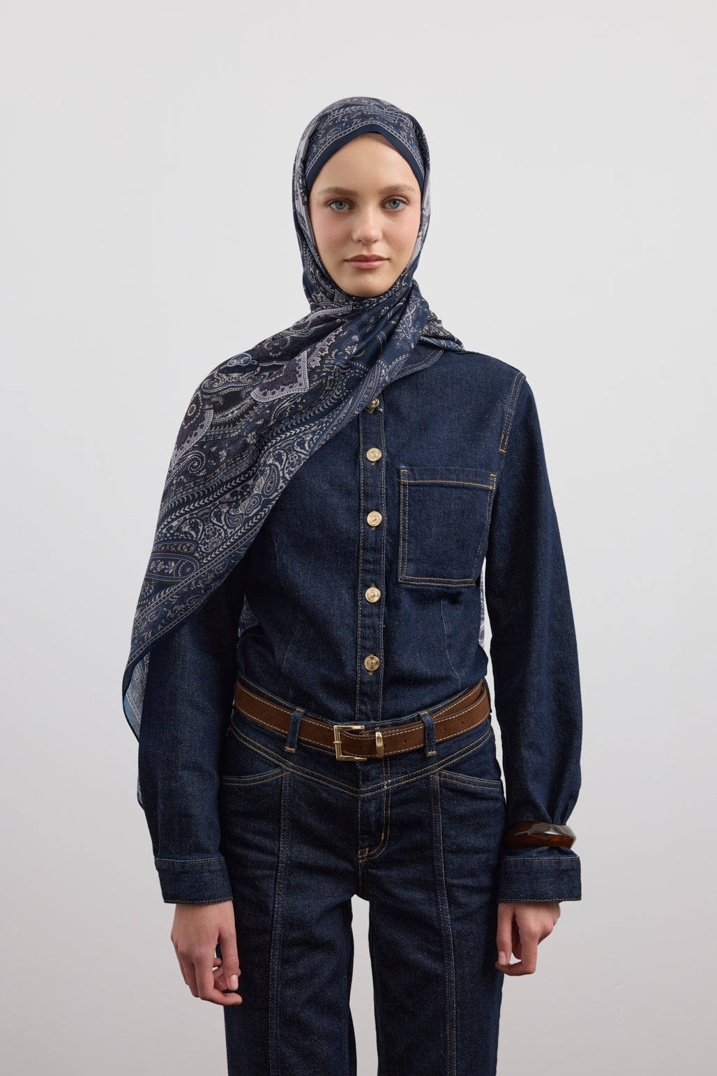 Pamuklu Şal Shadow Lacivert, yüksek kaliteli pamuk ve elyaf karışımından üretilen seçkin kumaşı sayesinde inanılmaz hafiflikte, nefes alabilen ve ciltle tamamen uyumlu bir kullanım vadediyor. Shadow deseninin derin gölgelendirme efektleri ve kıvrımlı motifleri ise şala sofistike bir hava katıyor. Özellikle bohem esintili kombinlerinizde, gündelik giyiminizde sade kıyafetleri dengelemek için ya da özel etkinliklerde şık outfits'lerinize zarif bir dokunuş eklemek istediğinizde bu modeli rahatlıkla tercih edebilirsiniz. Üstelik 70x185 cm ölçüleriyle, farklı bağlama stillerine ve yüz tiplerine kusursuzca uyum sağlayarak her tarzda kolayca kullanılabiliyor.
