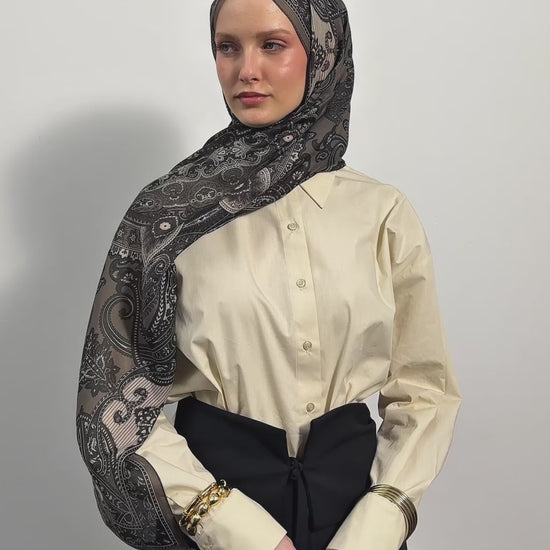 Pamuklu Şal Shadow Vizon, yüksek kaliteli pamuk ve elyaf karışımından üretilen seçkin kumaşı sayesinde inanılmaz hafiflikte, nefes alabilen ve ciltle tamamen uyumlu bir kullanım vadediyor. Shadow deseninin derin gölgelendirme efektleri ve kıvrımlı motifleri ise şala sofistike bir hava katıyor. Özellikle bohem esintili kombinlerinizde, gündelik giyiminizde sade kıyafetleri dengelemek için ya da özel etkinliklerde şık outfits'lerinize zarif bir dokunuş eklemek istediğinizde bu modeli rahatlıkla tercih edebilirsiniz. Üstelik 70x185 cm ölçüleriyle, farklı bağlama stillerine ve yüz tiplerine kusursuzca uyum sağlayarak her tarzda kolayca kullanılabiliyor.